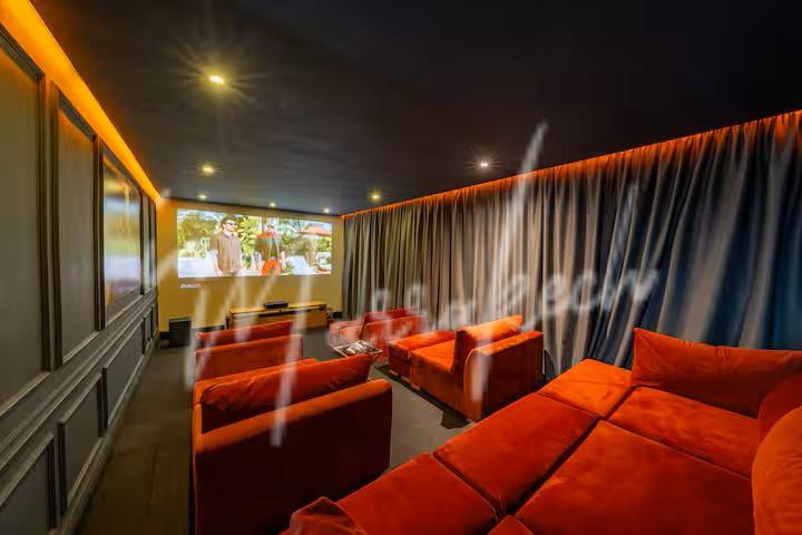 Additional amenities include a fully equipped kitchen, a guest toilet, and a private cinema room, ideal for family moments or gatherings with friends.