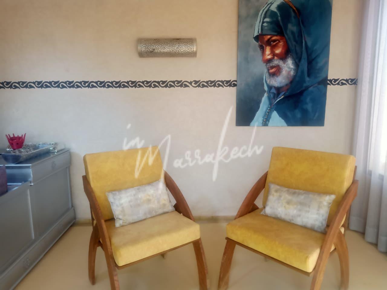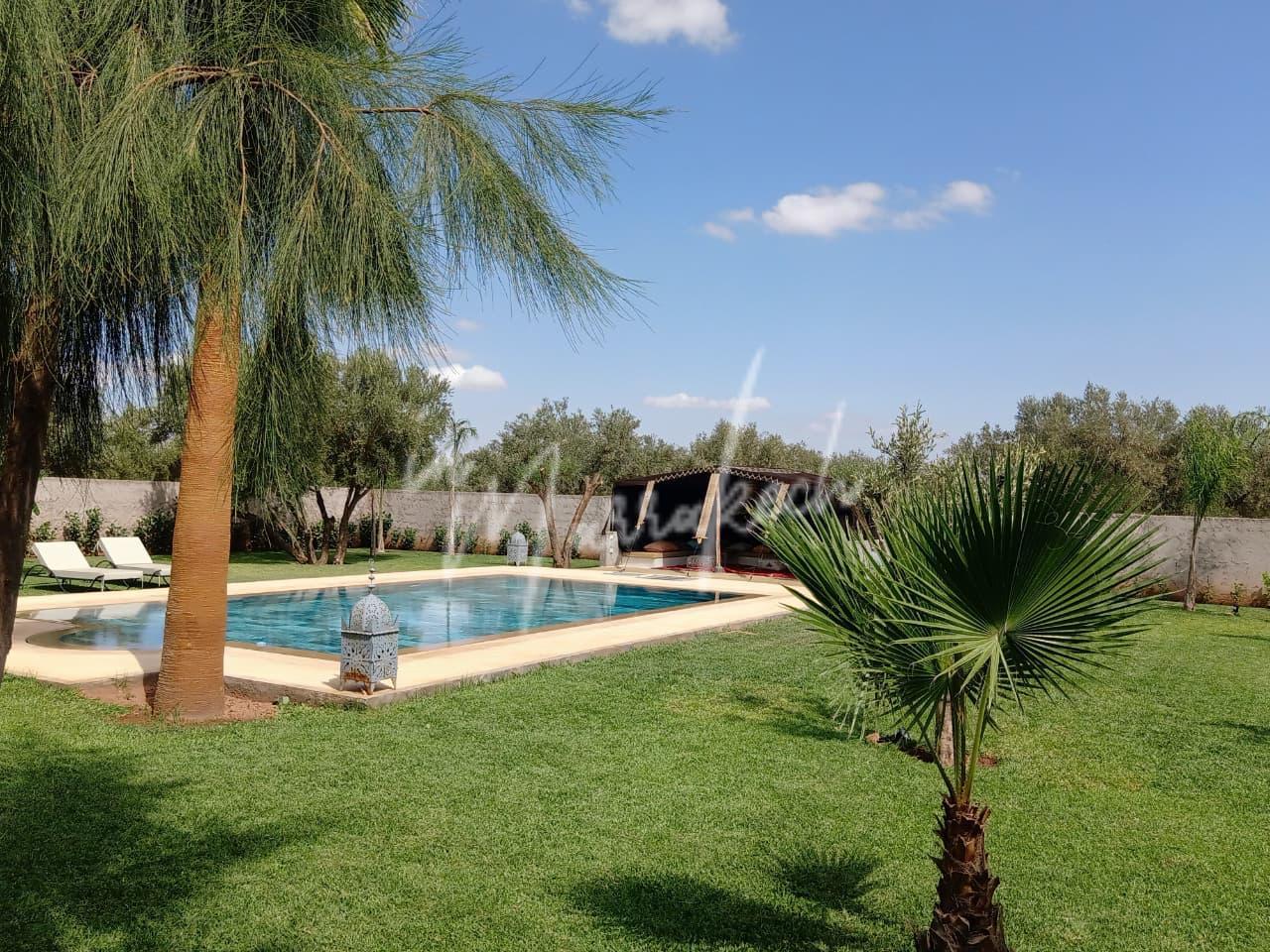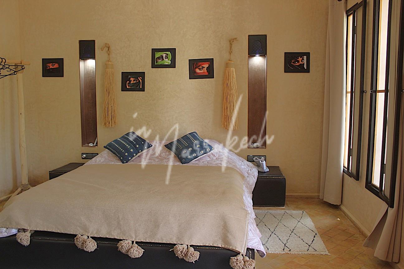 Description : Votre agence immobilière InMarrakech à le plaisir de vous proposer une charmante villa A LOUER VIDE édifié sur un terrain de 1500m² situé à 22km de Marrakech (20mn du golf Amelkis) comprenant trois chambres avec salle d’eau, salle à manger, cuisine et à l’étage un salon avec cheminée, piece de rangement.