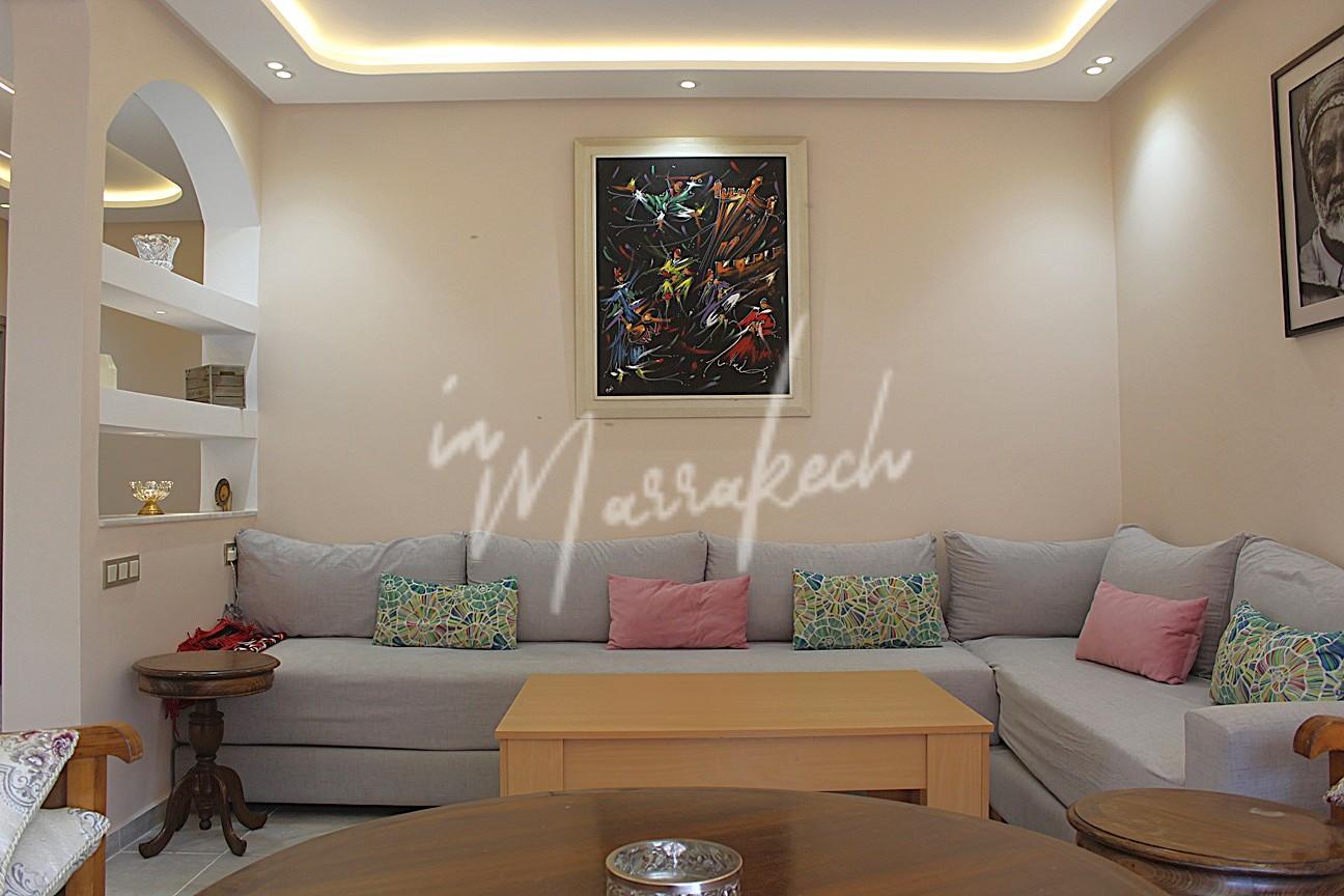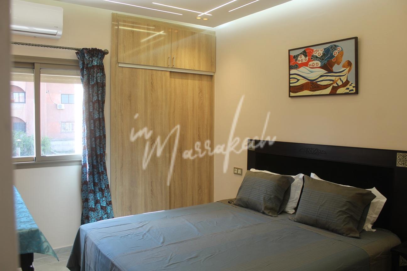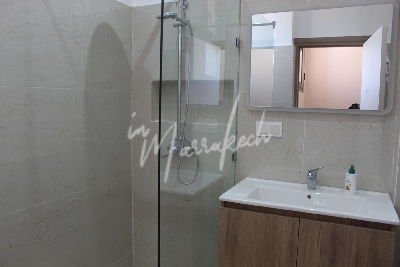 Description : Votre agence immobilière InMarrakech à le plaisir de vous proposer un appartement entièrement refait et meublé a neuf situé au 2e étage sans ascenseur dans une résidence avec des jardins au niveau de la boulangerie Alpha 2000 sur l’Avenue Allal El fassi comprenant une entrée , salon, une belle cuisine entièrement équipée ( Plaque , hotte four , frigo congélateur , micro-onde , lave-linge et lave-vaisselle ), deux chambres et une salle deau.