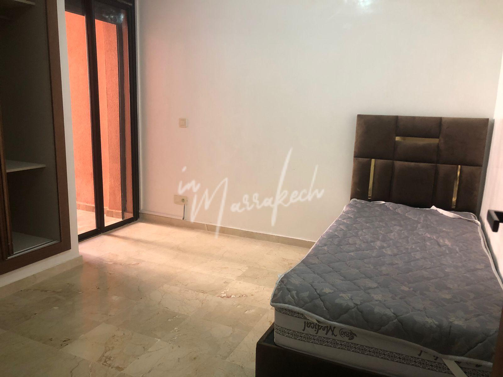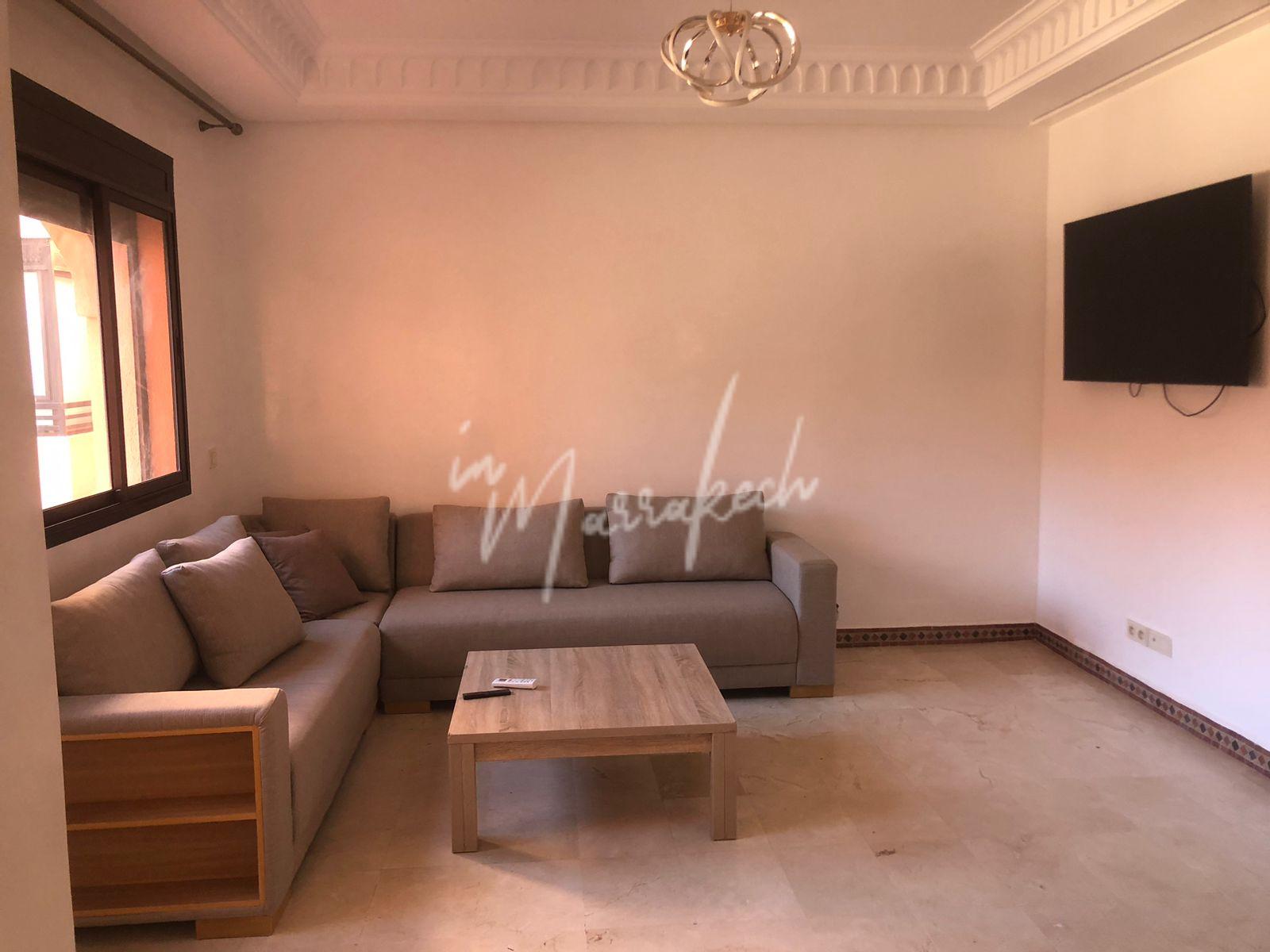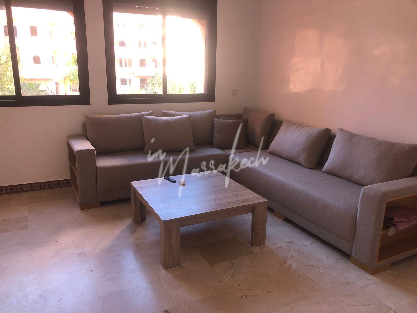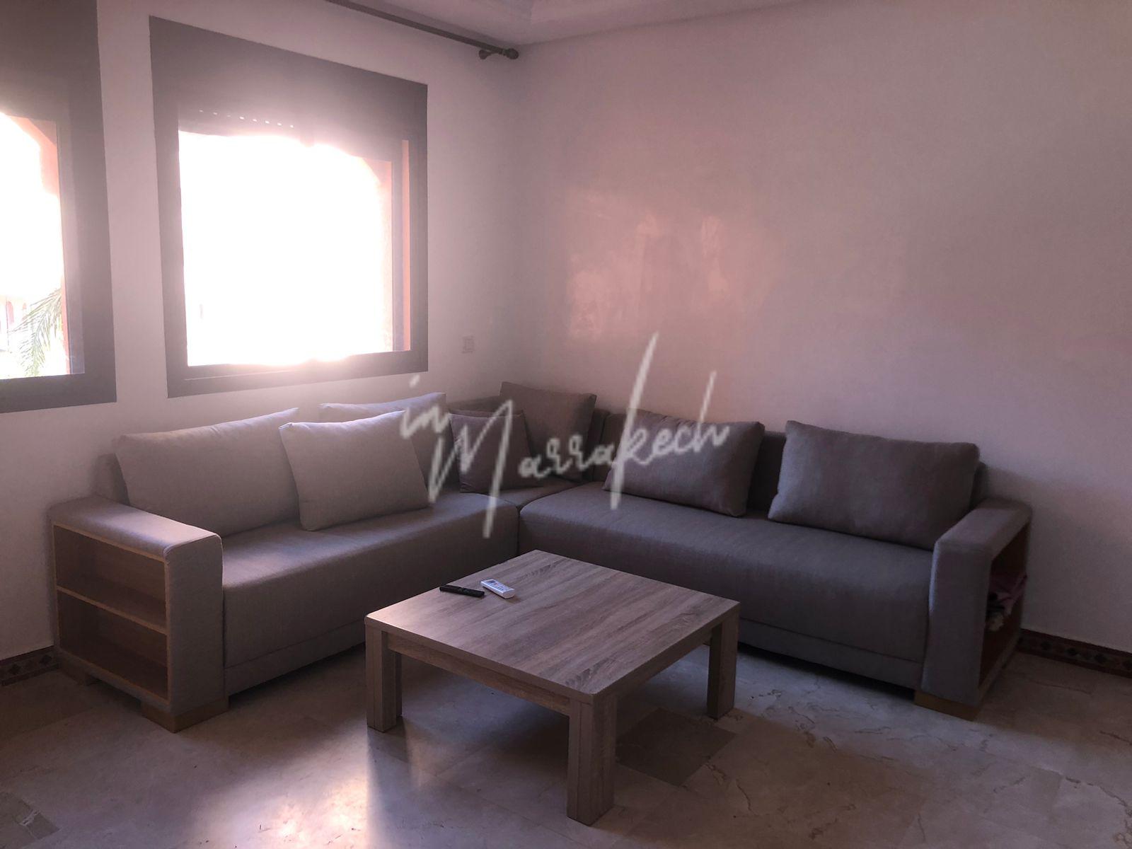 Description : Votre agence immobilière InMarrakech à le plaisir de vous proposer un appartement situé au 1e étage dans une résidence avec piscine comprenant une entrée, salon avec cheminée et petite terrasse une cuisine équipée, une chambre pour parent et une chambre enfant, salle d’eau.