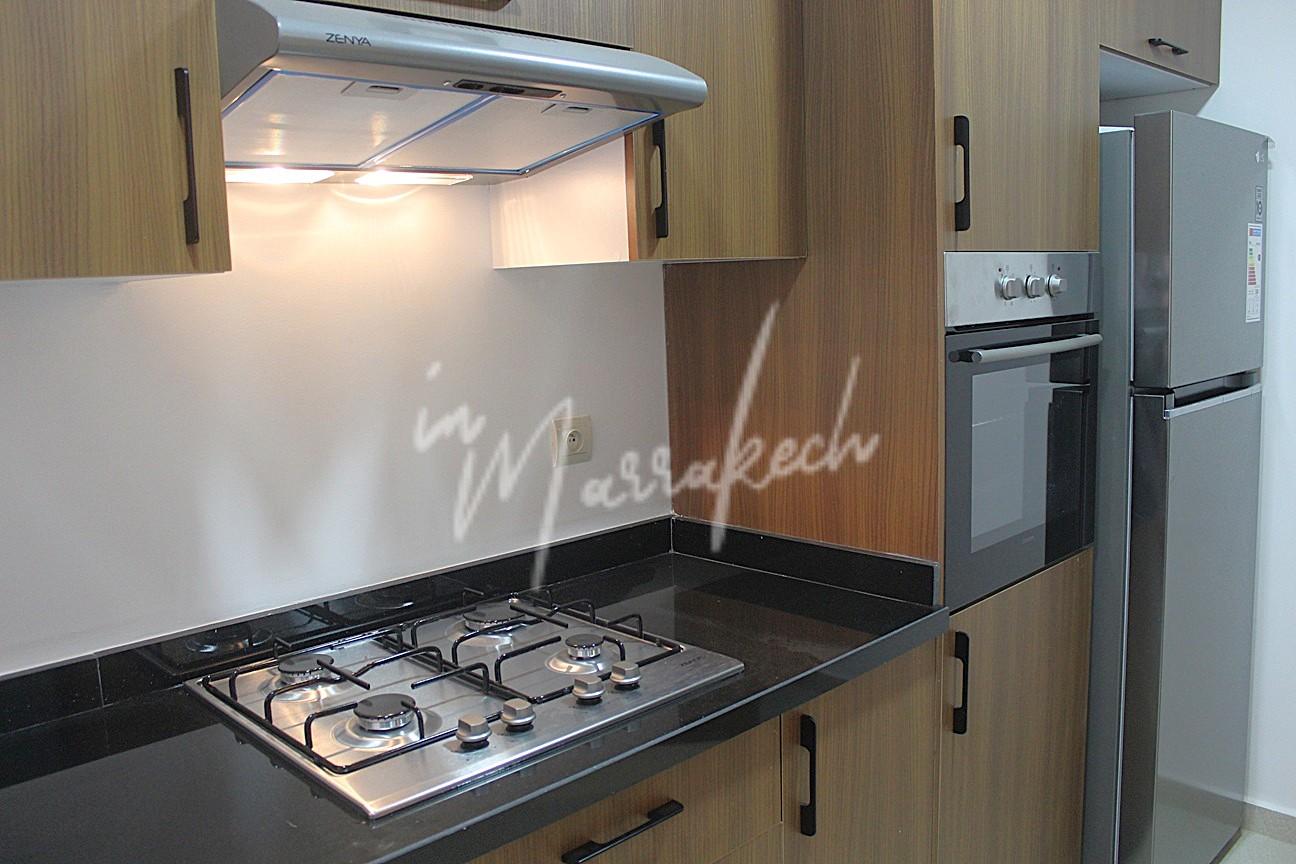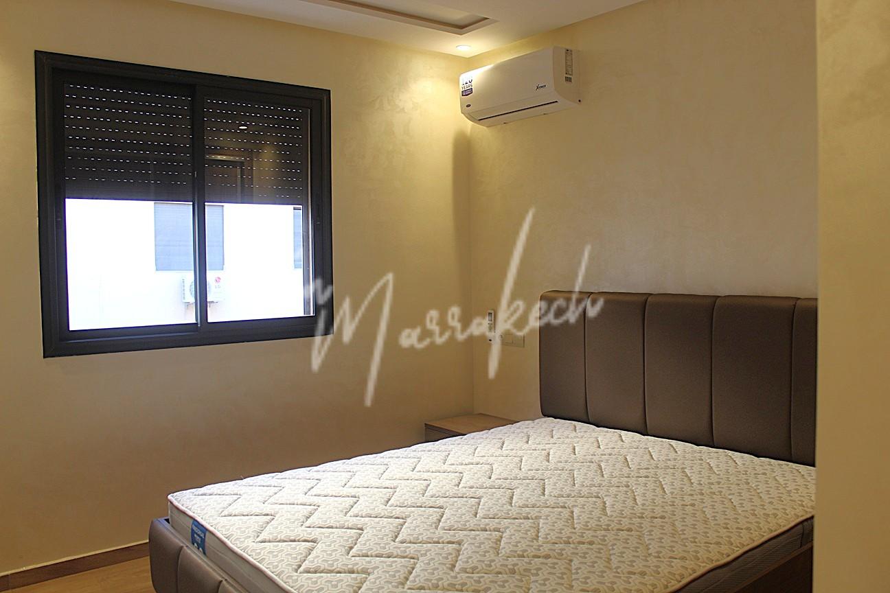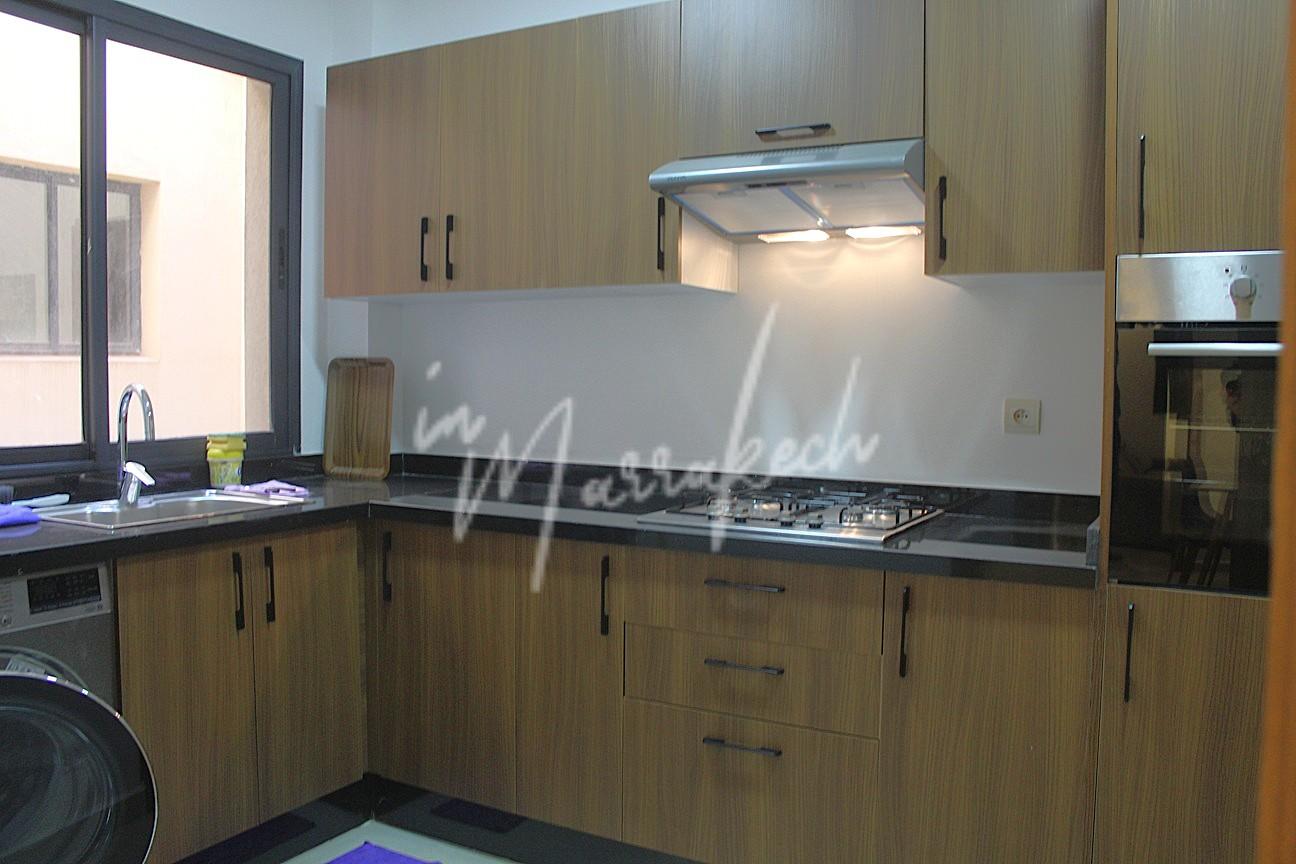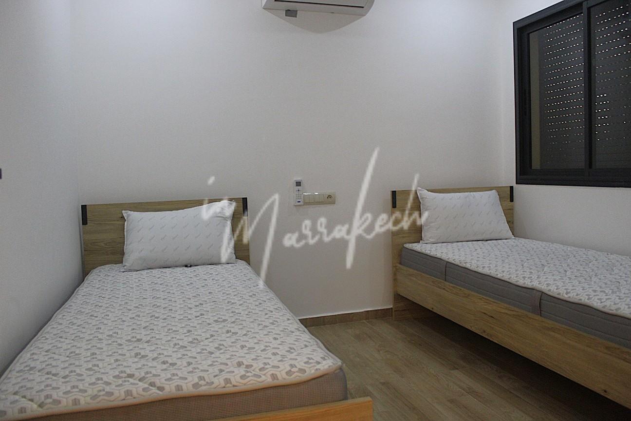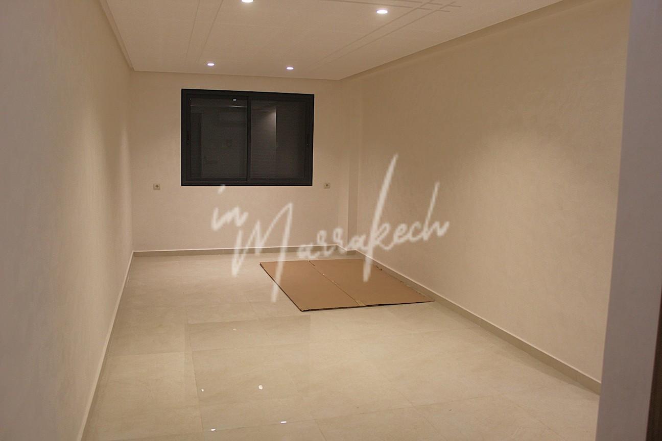 Description : Votre agence immobilière InMarrakech à le plaisir de vous proposer un appartement neuf meublé ou semi meublé situé au 2e étage d’une superficie de 85 m². Il se compose de trois chambres dont une avec salle d’eau, d’une autre salle d’eau commune aux deux autre chambres, d’un salon, d’une cuisine entièrement équipée ainsi que d’un petit balcon. L’appartement est situé dans une belle résidence avec piscine dans le quartier MABROUKA donnant sur la route de Safi