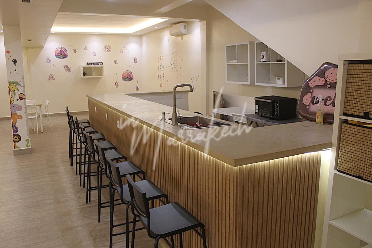 Description : Votre agence immobilière HB-immo sur Marrakech à le plaisir de vous proposer un local en sous-sol unique, idéal pour un projet de loisirs destiné aux enfants. Cet espace de 200 m² est entièrement équipé et prêt à fonctionner. Nous vous proposons un fonds de commerce avec rachat du mobilier et des travails proposés a 250 000Dhs et un loyer de 15 000Dhs, Il y a déjà deux mois de cautions donné propriétaire donc pas de caution à donner.