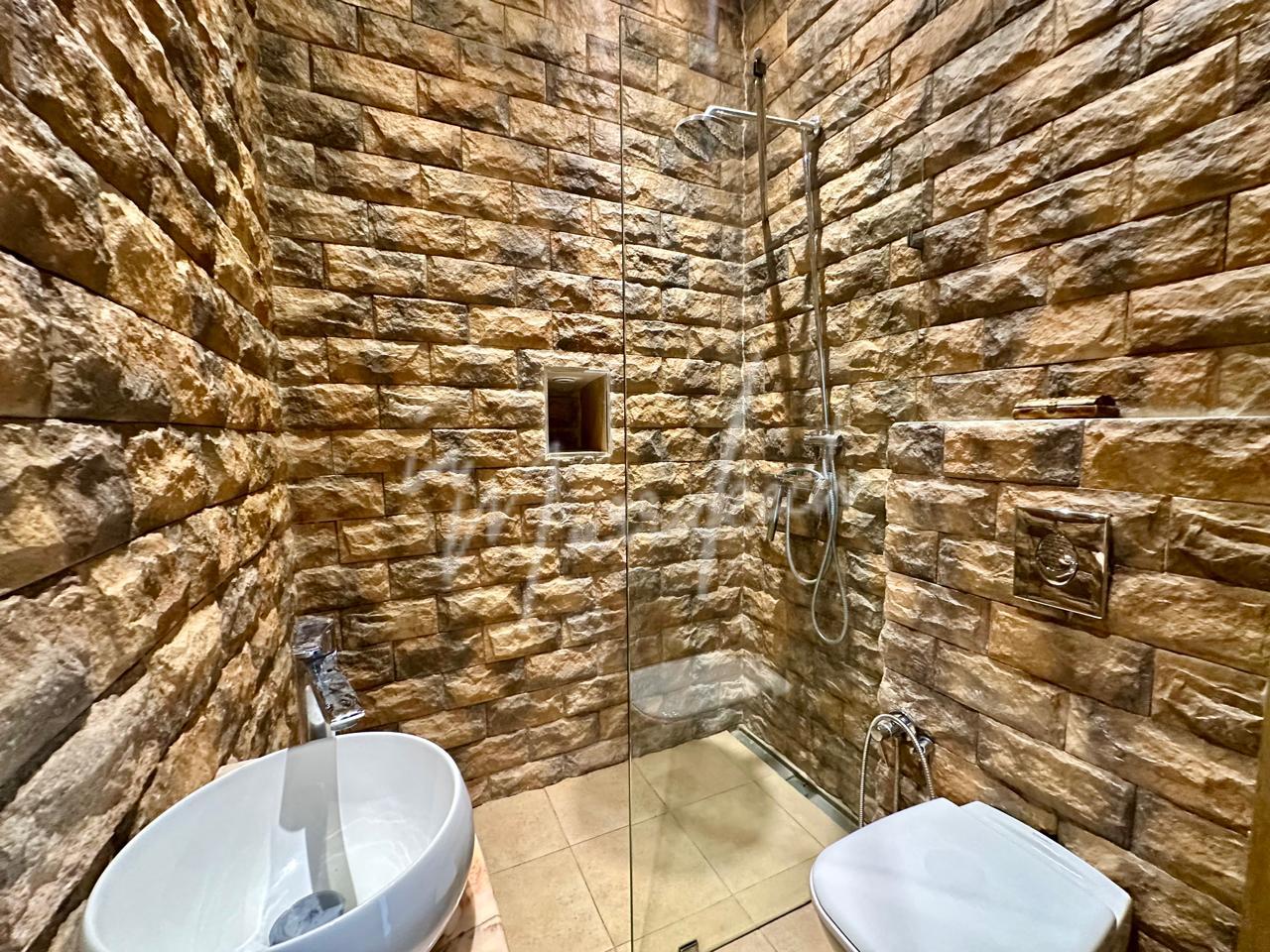 • Un rez-de-chaussée de 124 m² comprenant de beaux espaces de vie lumineux, avec cheminée et four, ainsi qu’une salle de bain avec vasque.