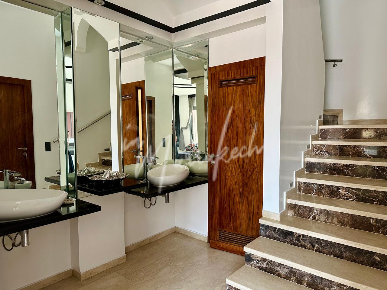 Description :Votre agence immobilière InMarrakech a le plaisir de vous proposer une magnifique villa entièrement rénovée, offrant une superficie globale de 400 m², située dans un environnement calme et agréable.