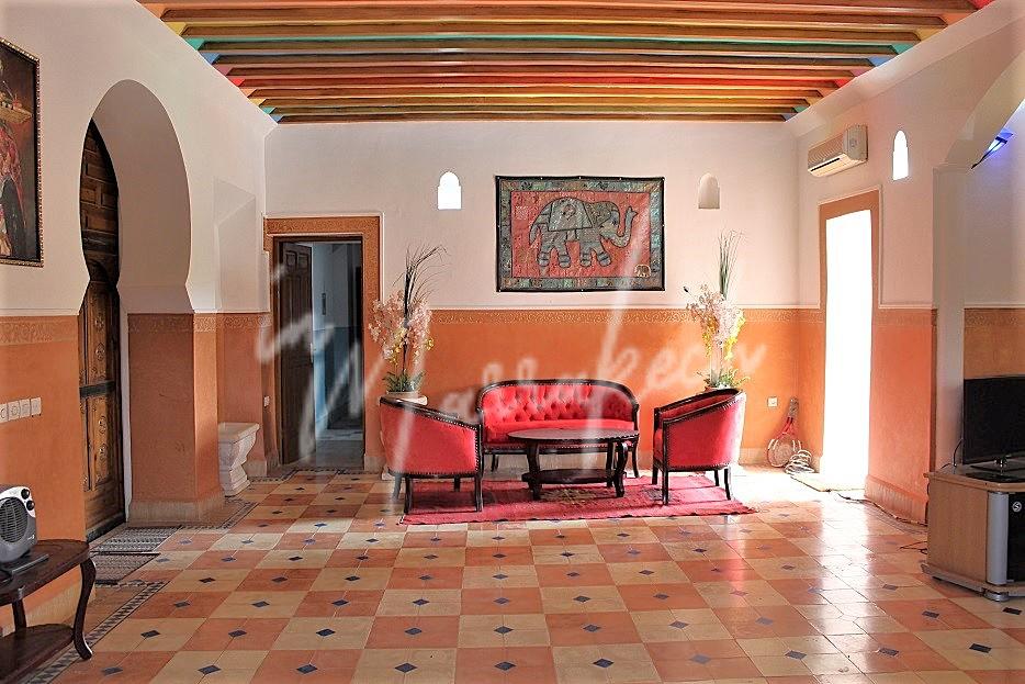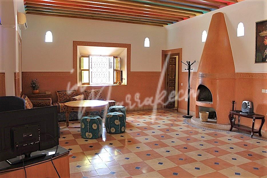 Description :Votre agence immobilière InMarrakech à le plaisir de vous proposer une sympathique maison traditionnelle de campagne A LOUER VIDE d’une superficie de 230m² édifié sur un terrain de 3500m² comprenant un salon avec cheminée ,terrasse , cuisine, trois chambres, toilette , salle d’eau et une douche.