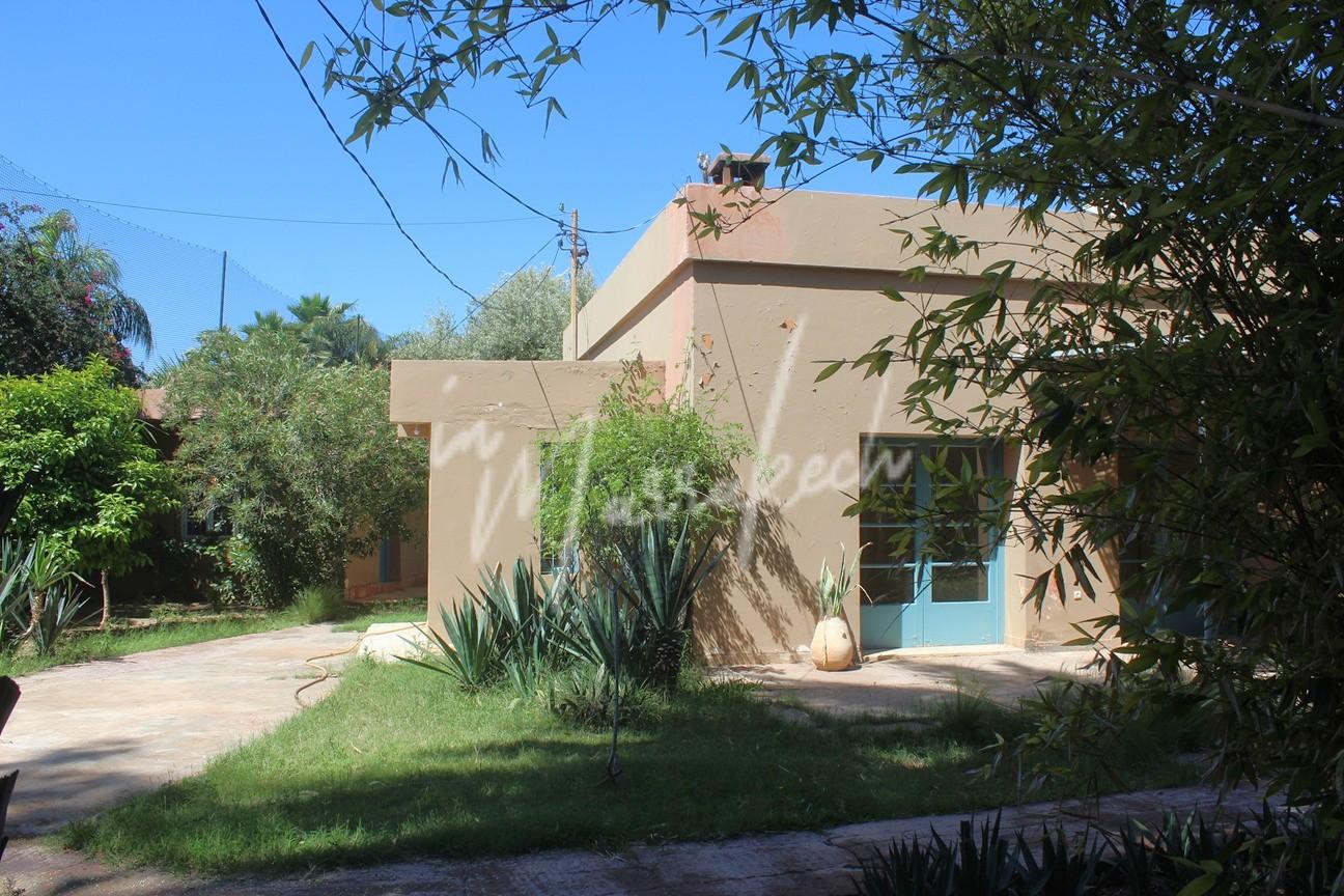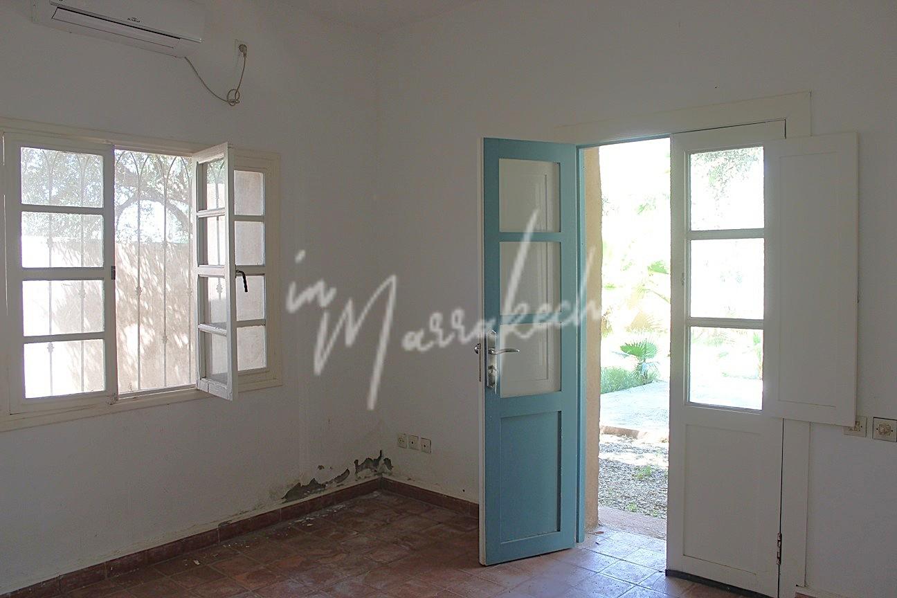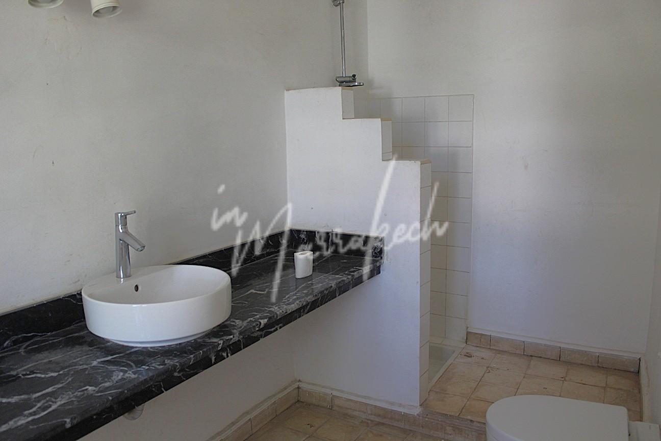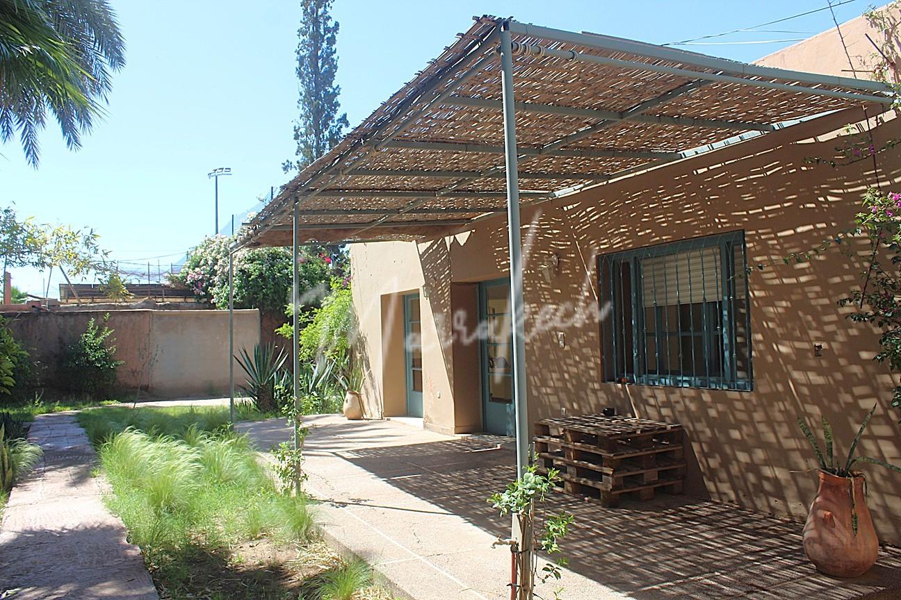 Description : Votre agence immobilière InMarrakech à le plaisir de vous proposer À LOUER VIDE une maison style campagne dans le quartier de Targa d’une superficie de 180m² elle se compose pour le bâtiment principal d’un sas d’entrée , un salon avec cheminée , cuisine , deux chambres et une salle d’eau et en dépendance deux chambres et une salle d’eau communicante.