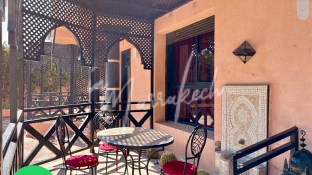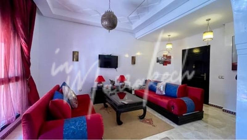 Description : Votre agence immobilière InMarrakech vous propose un beau studio de 75m² situé au Rdc dans une résidence avec plusieurs piscine comprenant un salon , cuisine américaine , une salle d’eau et une chambre.