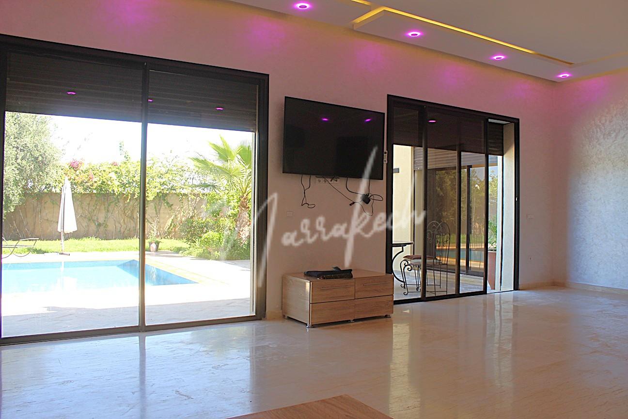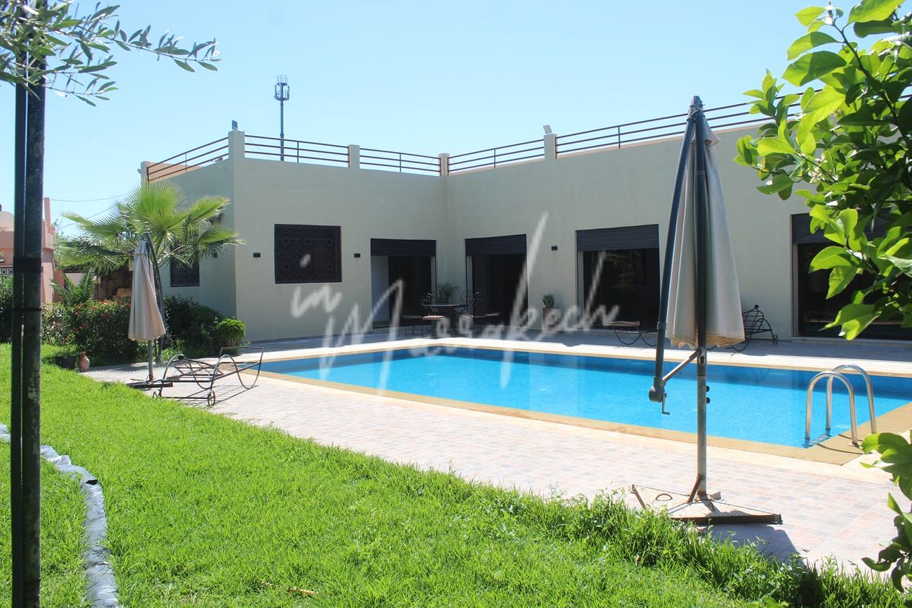 Description : Votre agence immobilière HB-immo sur Marrakech à le plaisir de vous proposer une villa a Louer en l’état situé a 20mn de Marrakech comprenant un grand salon , cuisine, toilette réception, trois chambres dont une avec salle de bain et une salle d’eau commune pour les deux autre chambres.