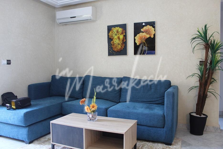 InMarrakech offers for long term rental his beautiful apartment located on the 3 rd floor of a wonderful residence with parking space . This property comprises of 1 bedroom, 1 bathrooms, a full equipped kitchen, and a living room with a cozy americain kitchen.