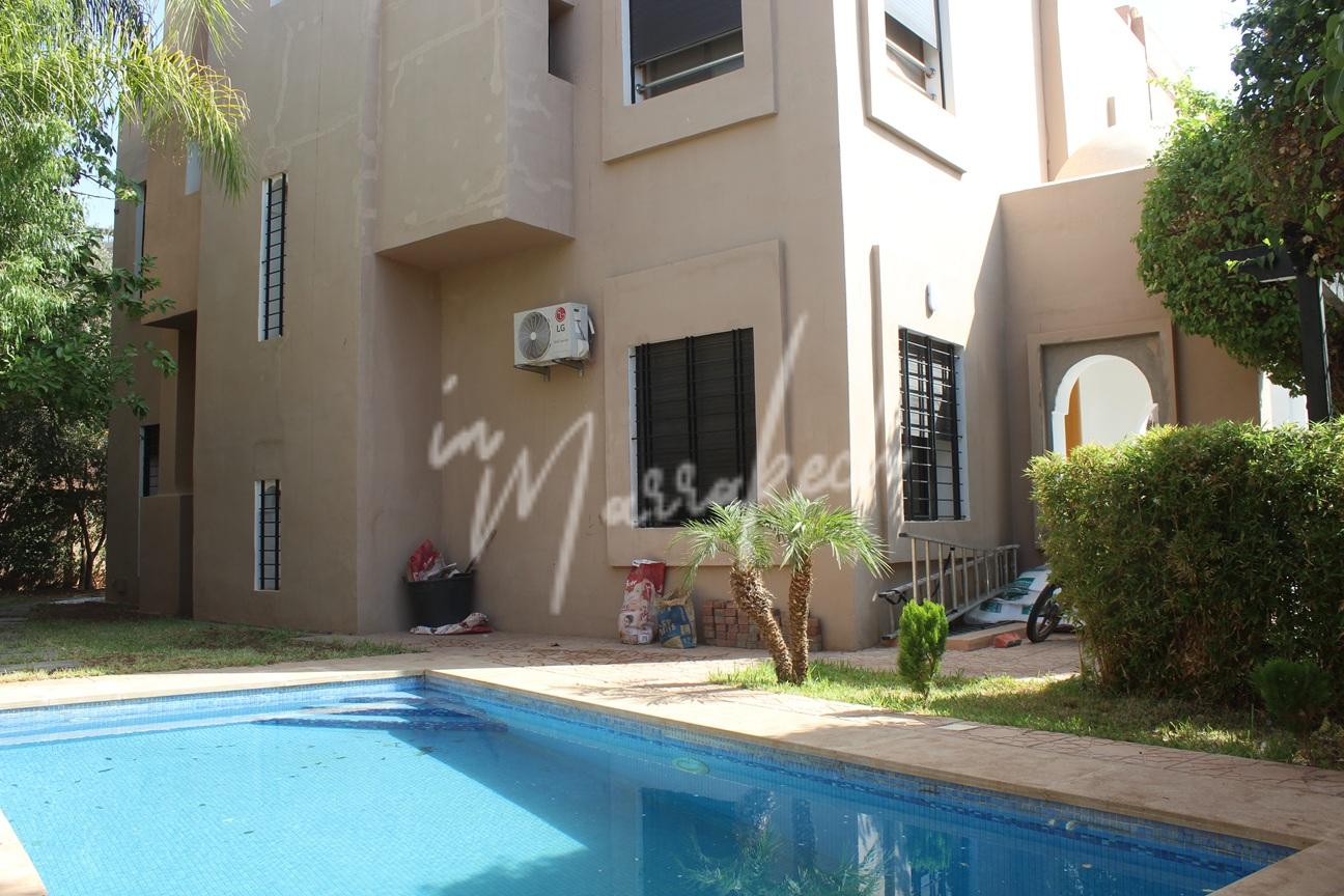 Votre agence immobilière InMarrakech vous propose un magnifique appartement non meublé situé au rez-de-jardin de la résidence Prestigia Ambre à Marrakech. D’une superficie de 141 m², il se compose de trois chambres, deux salles de bain, des toilettes invités, un coin salle à manger, ainsi qu’un salon chaleureux avec cheminée ouvrant sur le jardin.