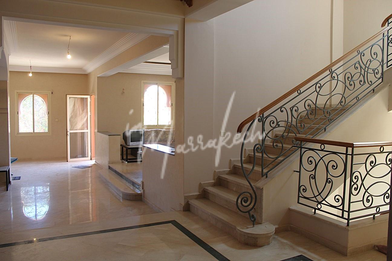 Your real estate agency InMarrakech is pleased to offer for sale a villa in excellent condition, featuring a swimming pool. It includes an entrance hall, a living room, a dining room, a kitchen, guest toilets, and a bedroom. On the upper floor, the villa has four bedrooms, each with its own bathroom. The basement also offers a hammam, a kitchen, and two additional rooms.