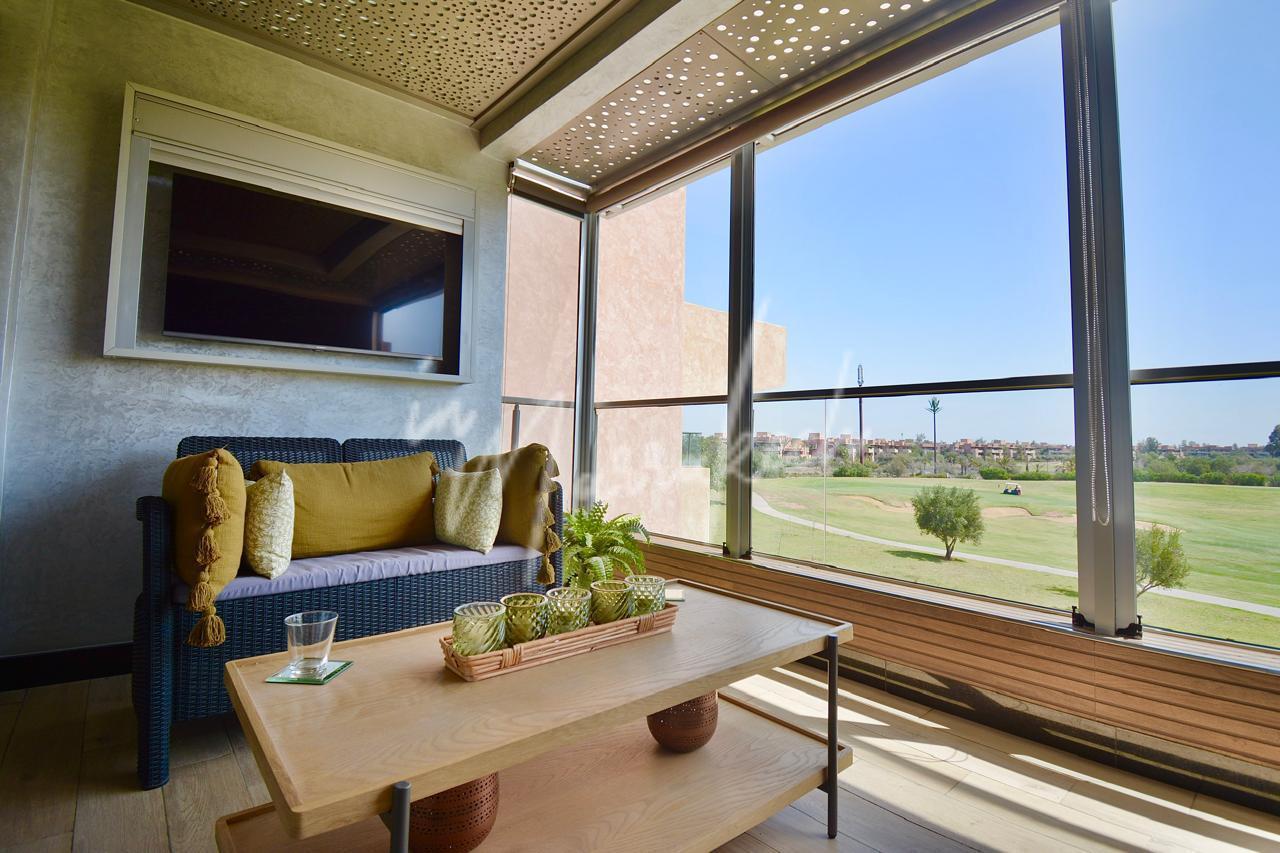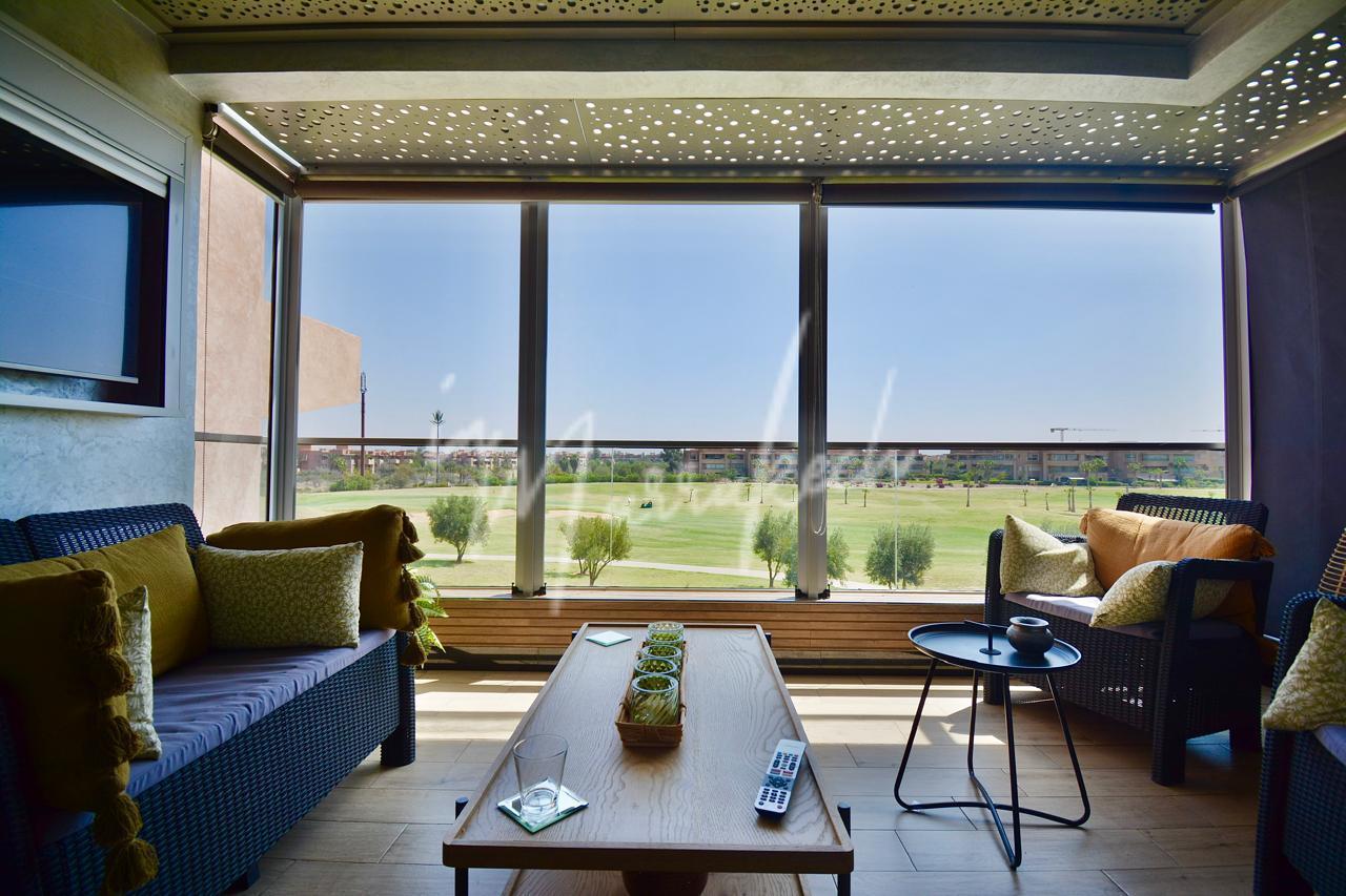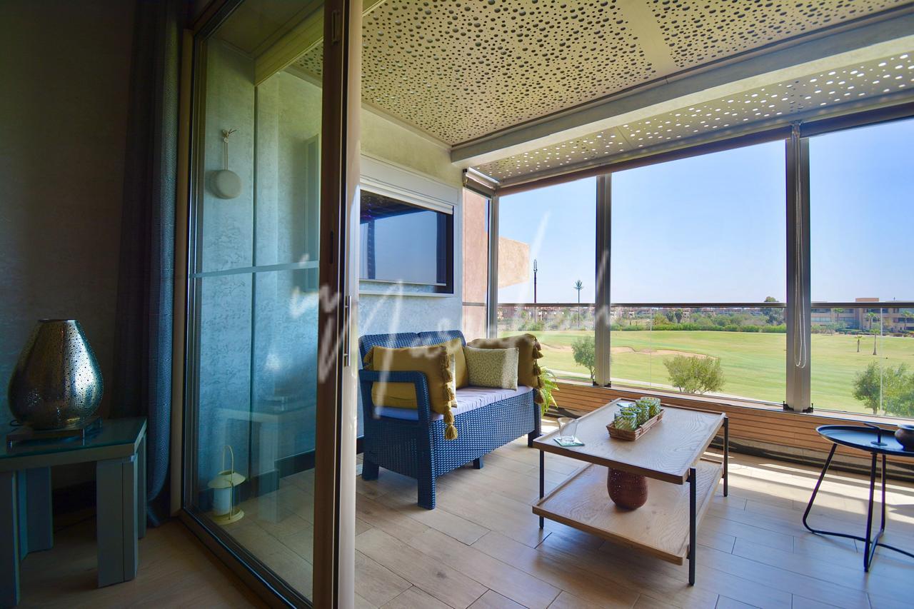 Description:Votre agence immobilière InMarrakech a le plaisir de vous proposer un somptueux appartement situé dans un cadre calme et agréable à Marrakech. Ce bien se compose d’un grand salon lumineux, de trois chambres spacieuses, de deux salles de bain modernes, d’un coin salle à manger, ainsi que d’une cuisine équipée. Vous profiterez également d’une belle terrasse avec vue sur le golf. L’appartement se trouve dans une résidence sécurisée avec jardin et piscine, offrant un cadre de vie confortable, paisible et agréable.