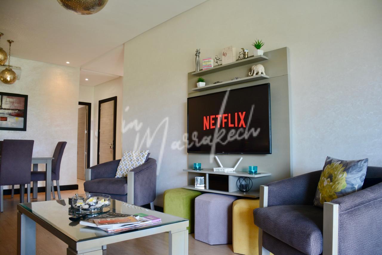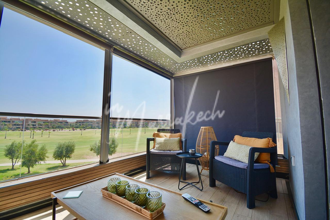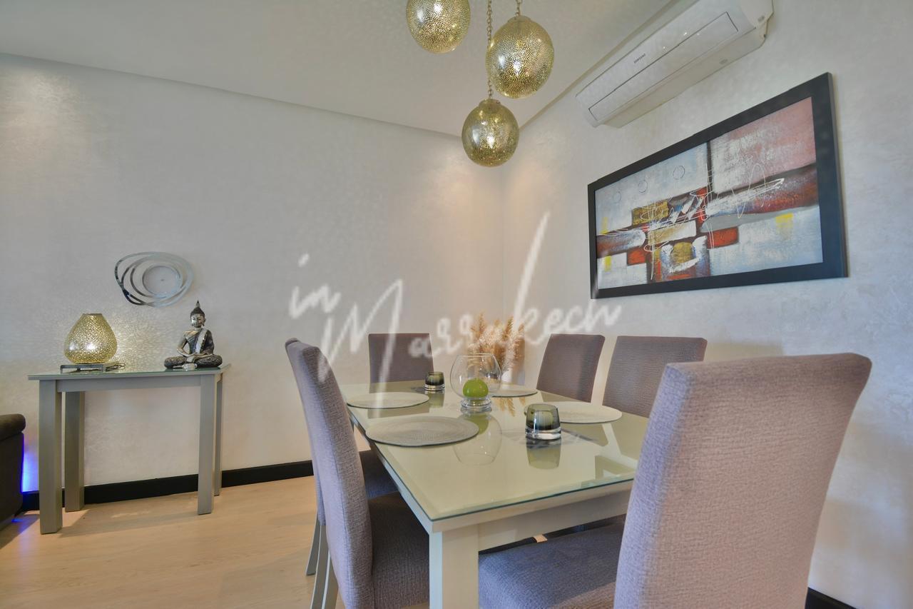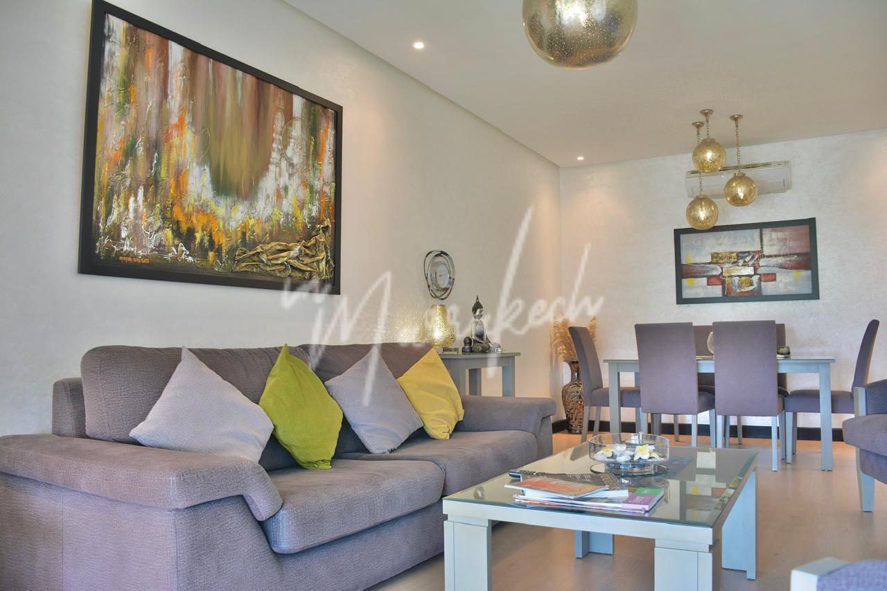Description:Votre agence immobilière InMarrakech a le plaisir de vous proposer un somptueux appartement situé dans un cadre calme et agréable à Marrakech. Ce bien se compose d’un grand salon lumineux, de trois chambres spacieuses, de deux salles de bain modernes, d’un coin salle à manger, ainsi que d’une cuisine équipée. Vous profiterez également d’une belle terrasse avec vue sur le golf. L’appartement se trouve dans une résidence sécurisée avec jardin et piscine, offrant un cadre de vie confortable, paisible et agréable.