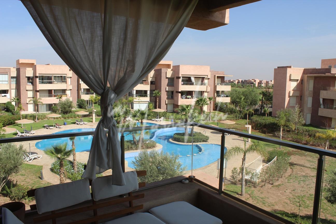 Description : Votre agence immobilière HB-immo sur Marrakech à le plaisir de vous proposer un Appartement situé au 2e étage avec vue panoramique sur Golf et le Club House ainsi que sur l’Atlas et piscine.
