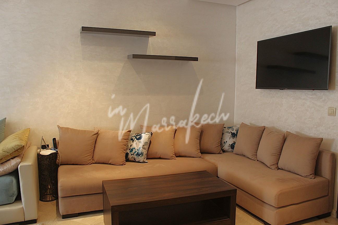 Description : Votre agence immobilière InMarrakech à le plaisir de vous proposer un appartement situé au 2e étage dans une résidence avec piscine dans le quartier de Mabrouka sur la route de Safi comprenant un salon , cuisine avec buanderie, deux chambres dont une parentale avec salle d’eau et une salle d’eau pour le 2e chambre.