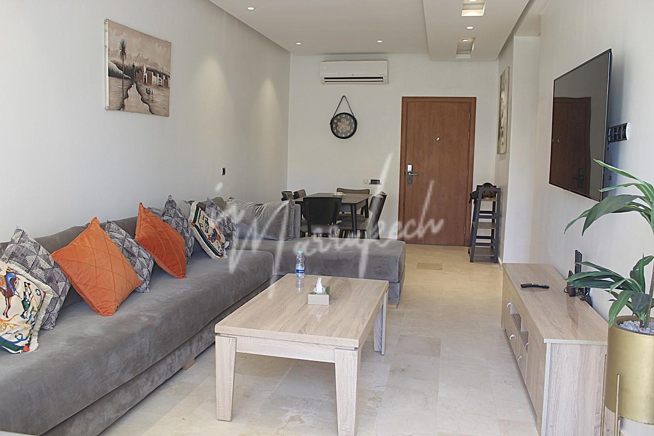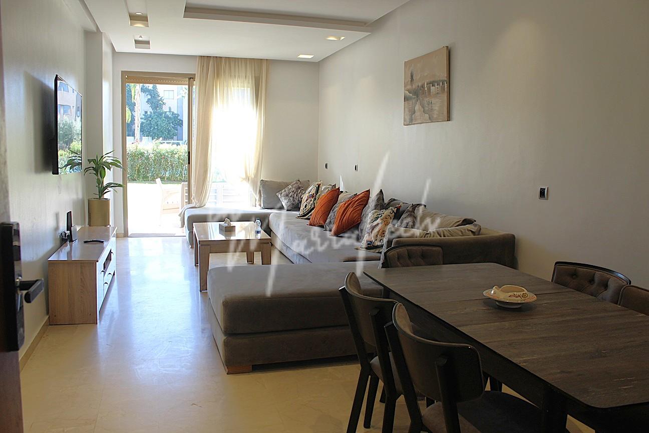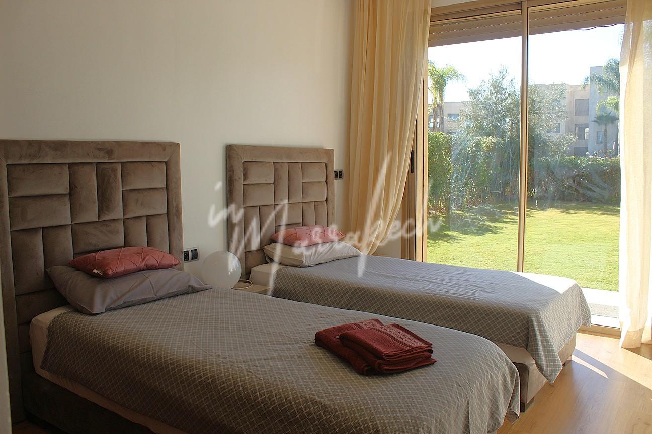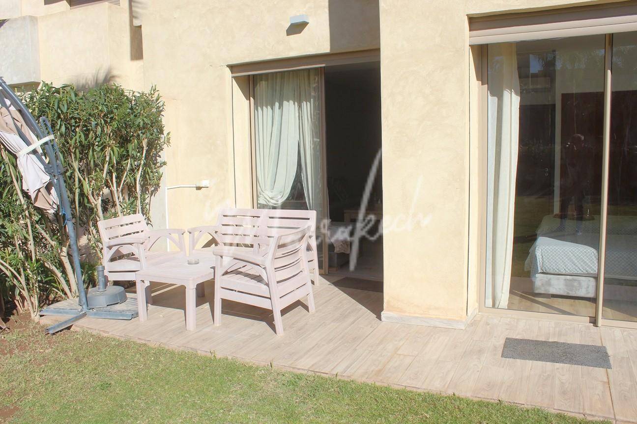 Description : Votre agence immobilière InMarrakech à le plaisir de vous proposer un appartement situé au Rdc avec un jardin privatif d’environ 100m² dans une résidence avec une grande piscine à Argan comprenant un salon, terrasse, cuisine, deux chambres, deux salles d’eau