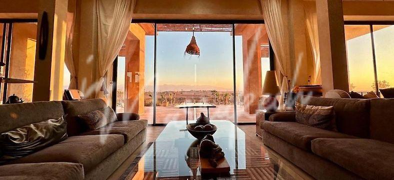 Située à 14 km de la koutoubia A 11 km des remparts de la médina de Marrakech, un autre monde se révèle à vous. identitaire et contemporain, ses portes s’ouvrent sur le salon offrant une vue inoubliable sur la splendeur de la chaine de l’Atlas et sur ces sommets enneigés l’hiver, une cuisine semi ouverte, toilette réception.