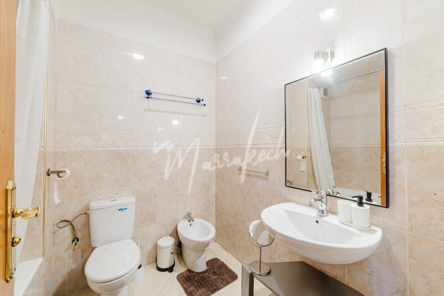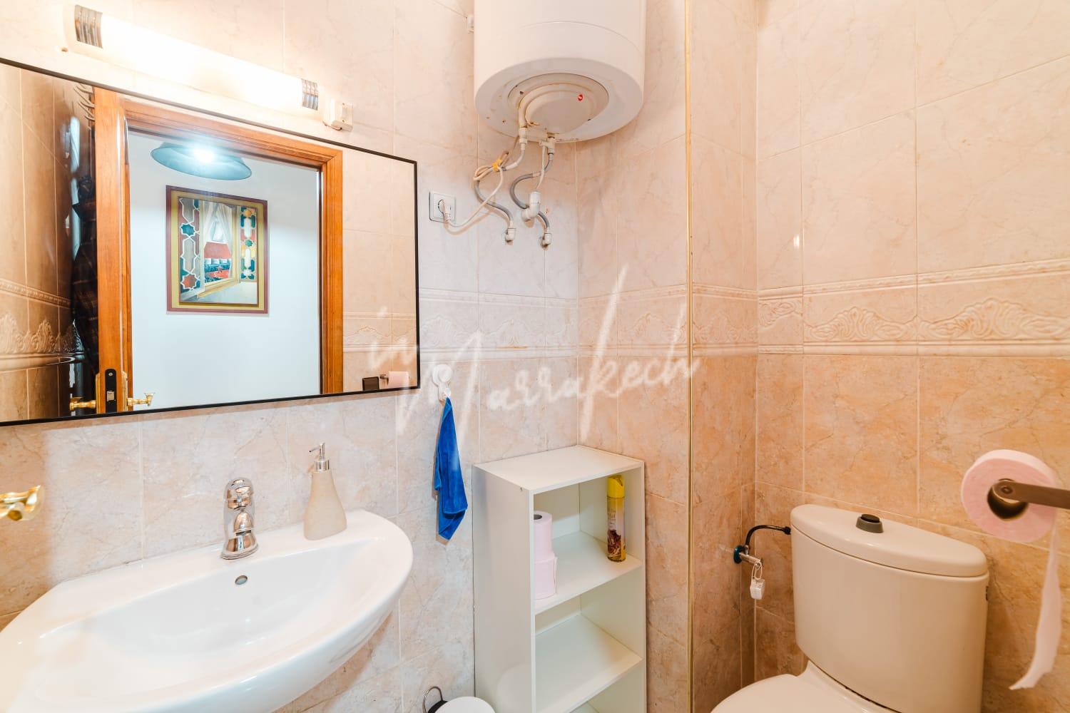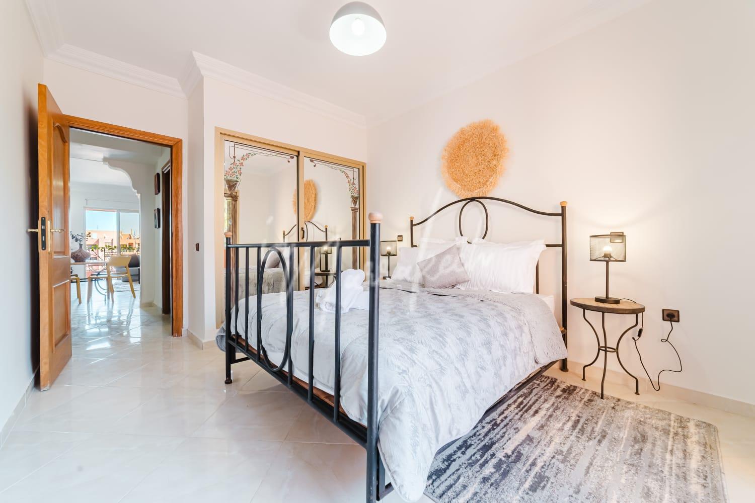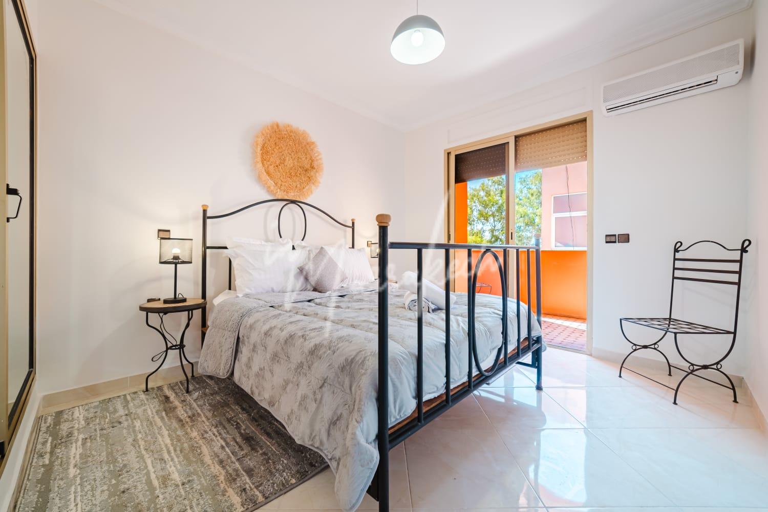 Votre agence immobilière InMarrakech a le plaisir de vous proposer appartement meublé de 99 m² situé au 5ème et dernier étage d’une petite résidence de 5 niveaux avec ascenseur et peu de résidents. L’appartement comprend un salon, coin salle à manger, cuisine entièrement équipée, deux chambres, une salle de bain et un toilette supplémentaire et deux terrasses, l’une donnant sur une ruelle calme et tranquille et l’autre sur le boulevard Mohammed VI.