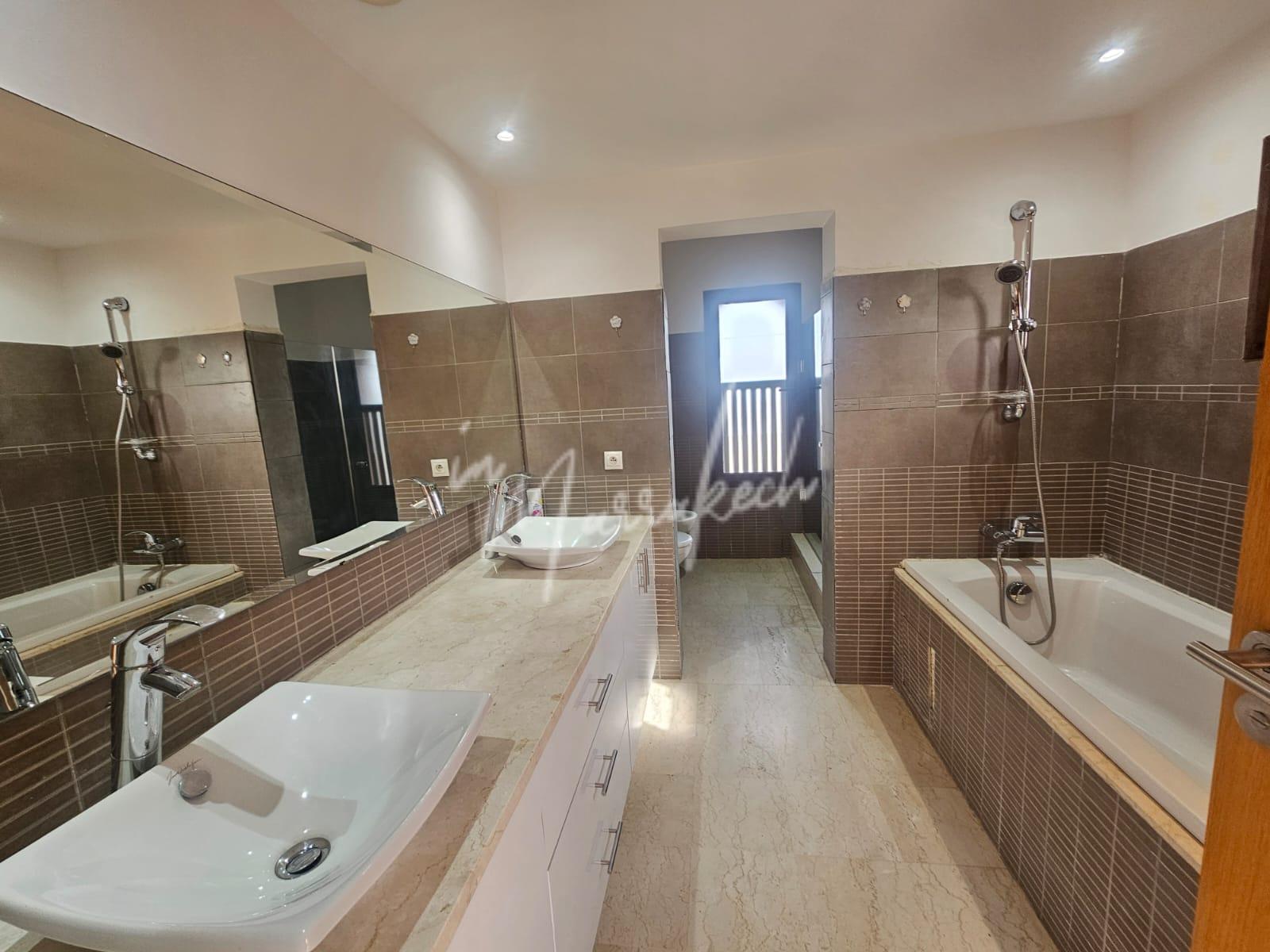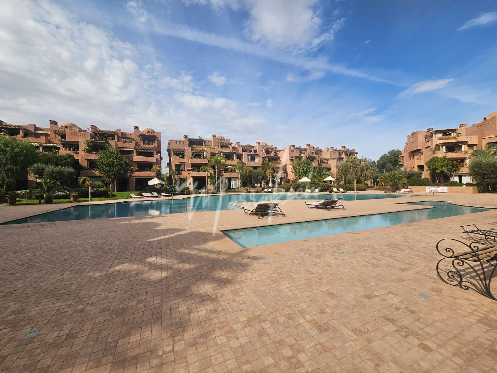 Description : HB-immo votre agence immobiliere sur InMarrakech à le plaisir de vous proposer un beau duplex situé au 2e étage dans une belle résidence avec piscine composé de : Une entrée donnant sur un salon avec cheminée, deux chambres avec salle d’eau, cuisine avec buanderie, toilette réception et une terrasse.