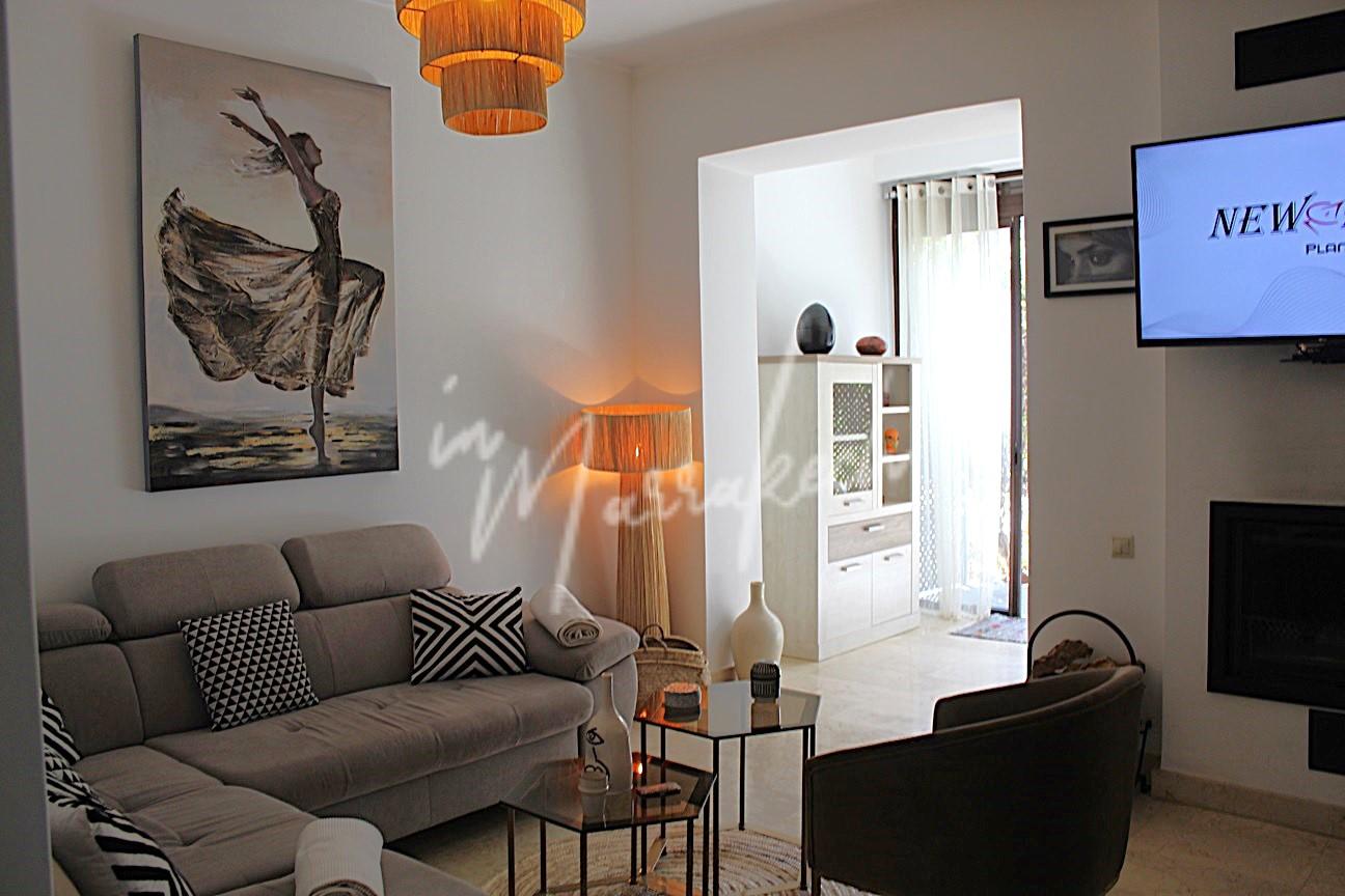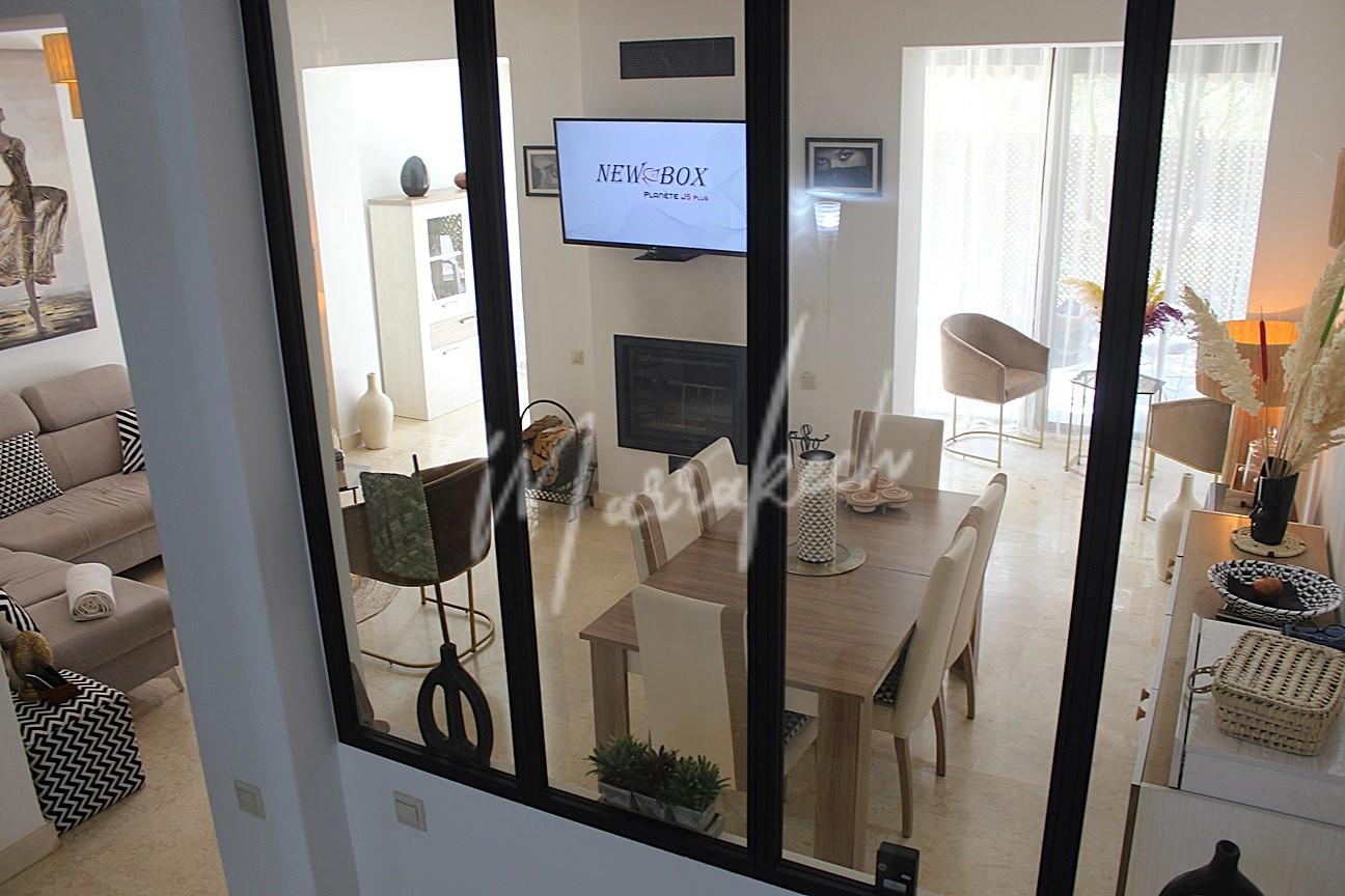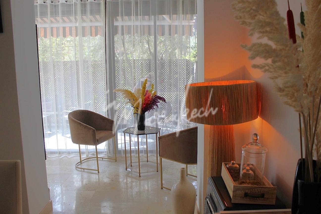Description : Votre agence immobilière InMarrakech à le plaisir de vous proposer un magnifique pavillon meublé à 10 mn de Marrakech situé au Jardins de l'Atlas. Comprenant au rdc une entrée, cuisine, toilette réception, salon avec cheminée, un joli petit jardin privatif, A l’étage deux chambres avec terrasse, une salle d’eau et au sous-sol une chambre d’appoint avec salle d’eau.