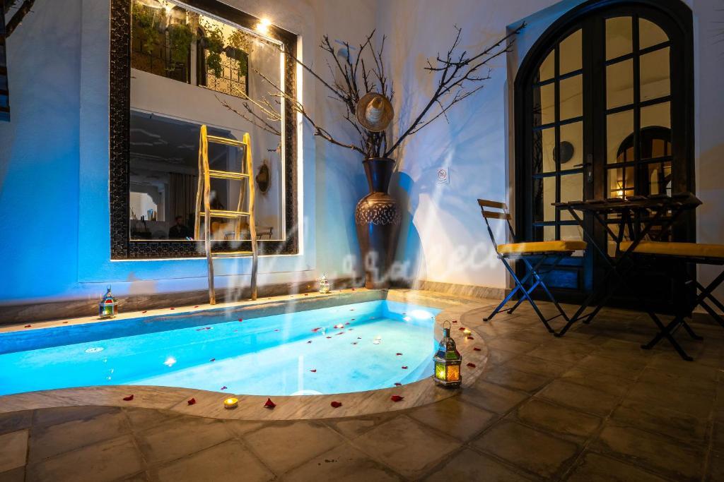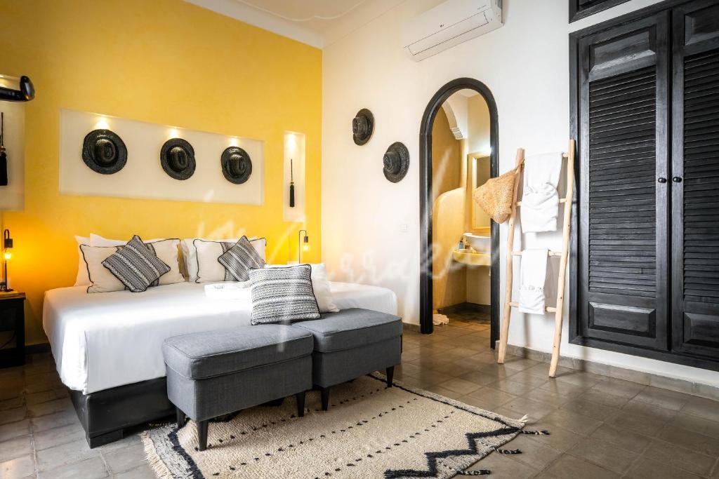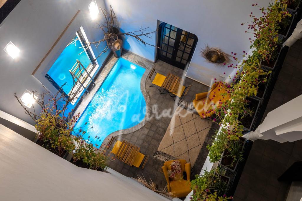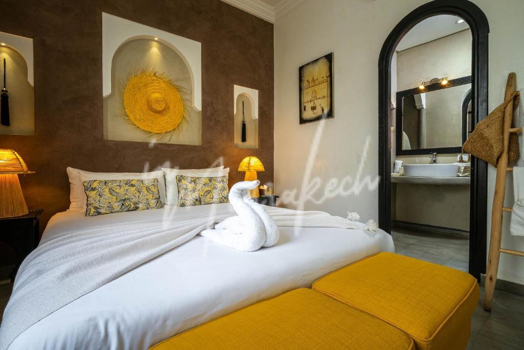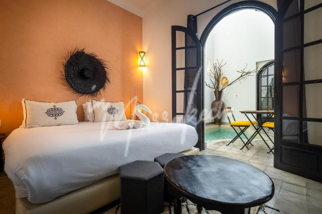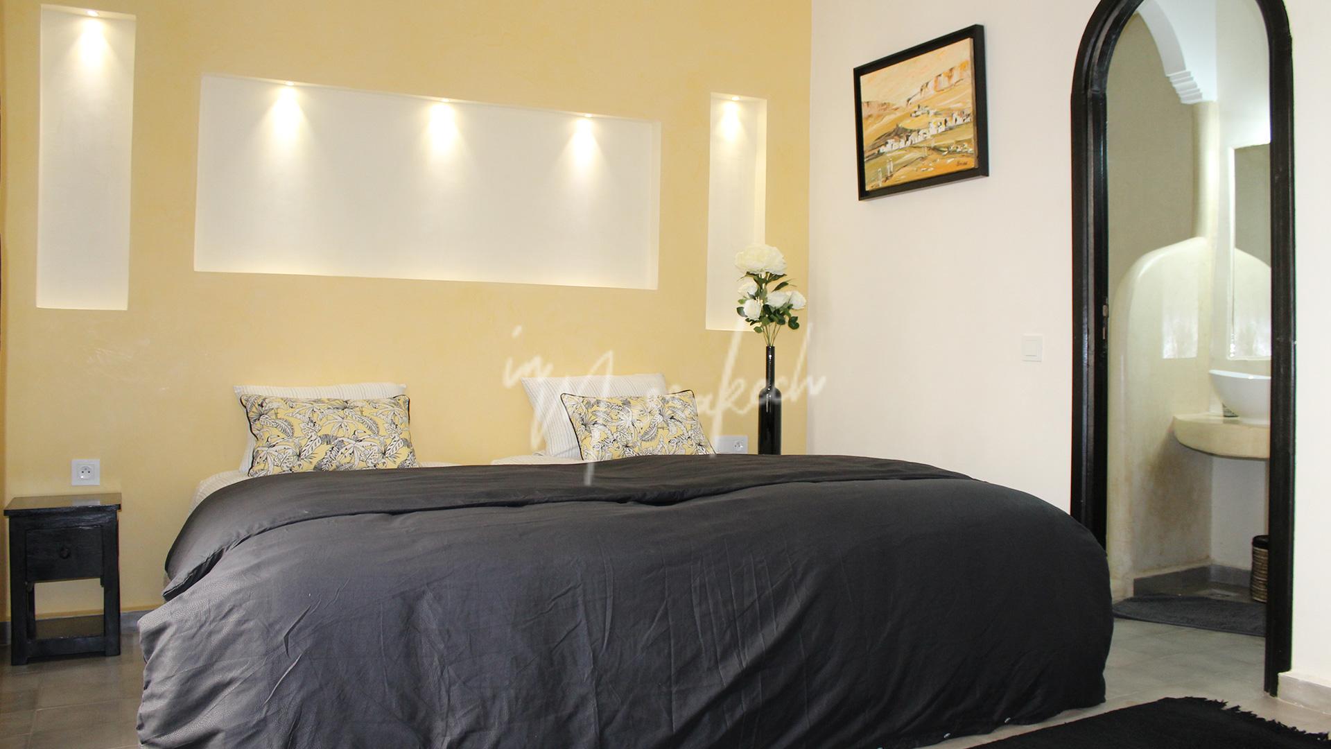 Description : Votre agence immobilière InMarrakech à le plaisir de vous proposer de découvrir ce somptueux Riad titré de 117m² avec une dépose en taxi devant la porte. Ce riad exploité en maison d’hôtes compte six suites avec salle d’eau dont deux au rdc et quatre à l’étage, une terrasse au-dessus