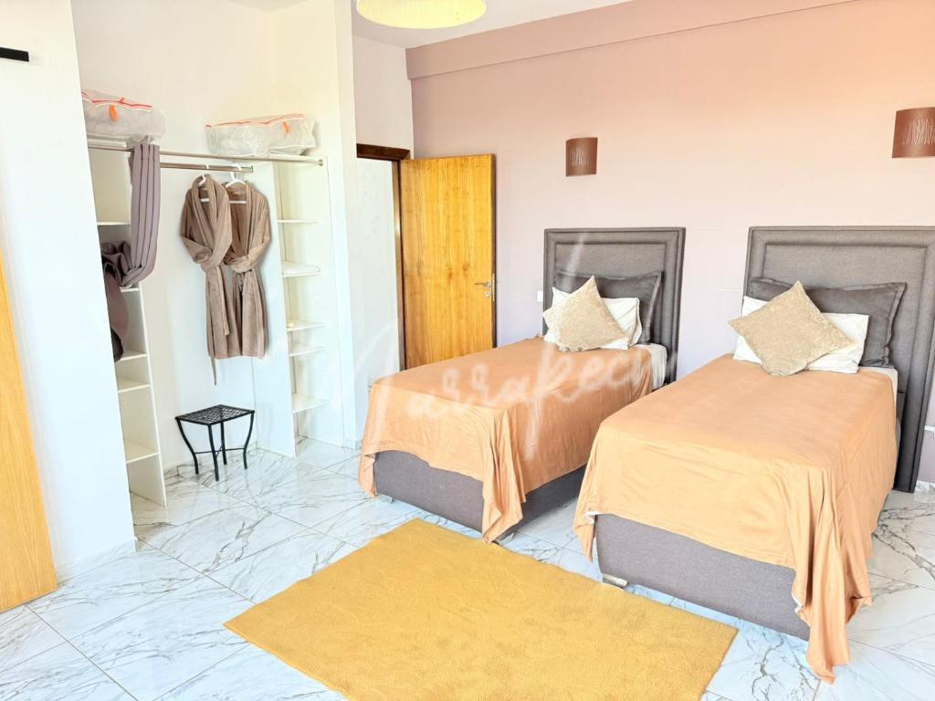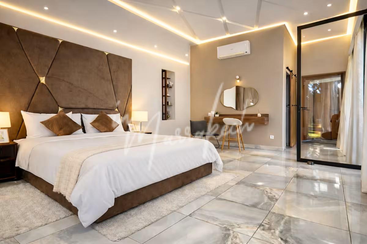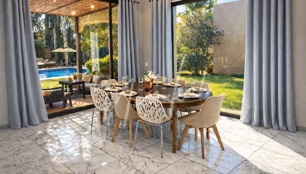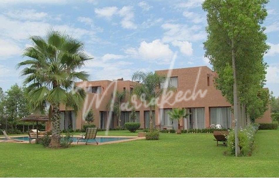 Description : votre agence immobilière InMarrakech vous propose à la Location une magnifique villa alliant la modernité et le charme oriental. cette villa de 515m2 habitable édifié sur un terrain de 5 000m²vous séduira par son cadre enchanteur. Les cinq suites possédant chacune leur salle de douche ainsi que leur dressing privatif vous séduiront par leurs vues époustouflantes. Deux grands salons de plus de 50m2 chacun répondront à toutes les préférences donnant sur la piscine.