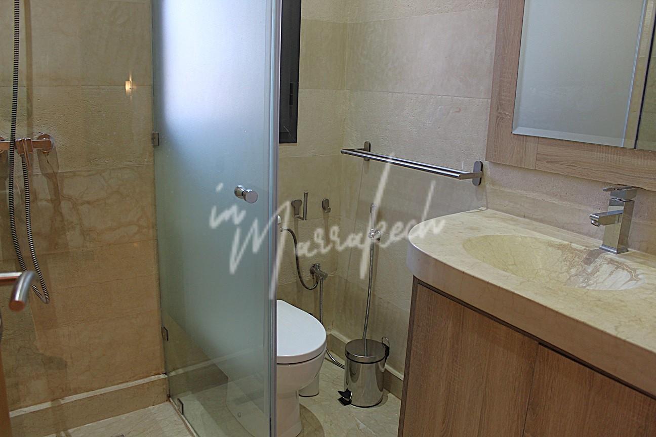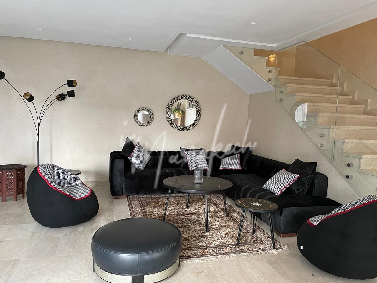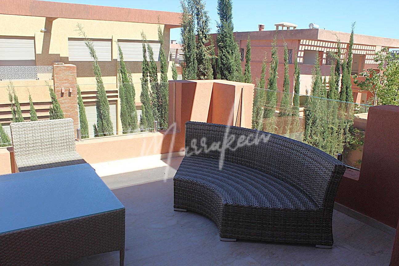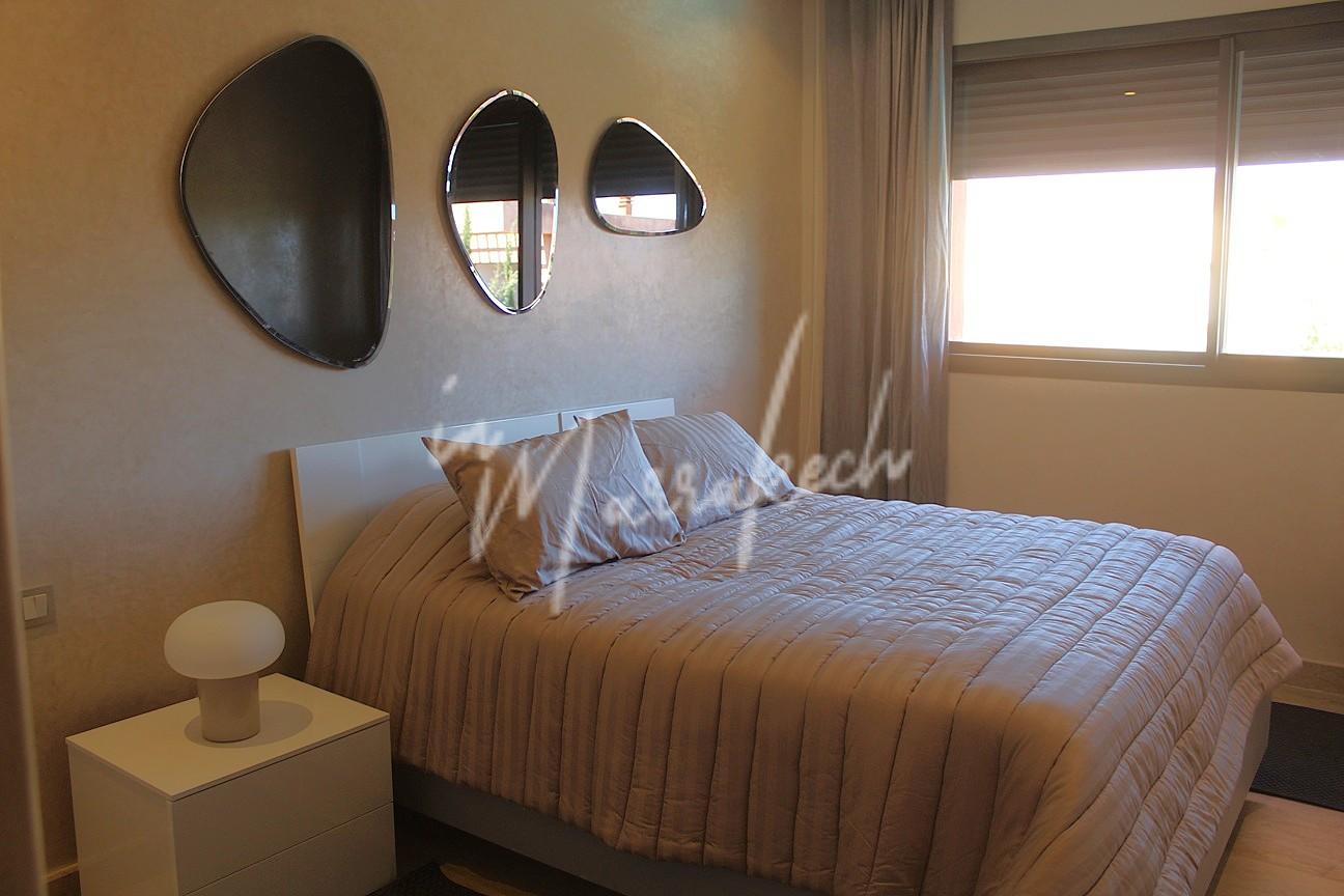 Description : votre agence immobilière InMarrakech vous propose à la LOCATION une très jolie villa moderne situé dans un domaine golfique situé à 10 minutes de Marrakech comprenant un vaste séjour, une superbe cuisine, toilette réception et à l’étage la villa vous offre trois magnifique chambres dont une parentale avec dressing, salle de bain et terrasse et une salle d’eau pour les deux autres chambres.