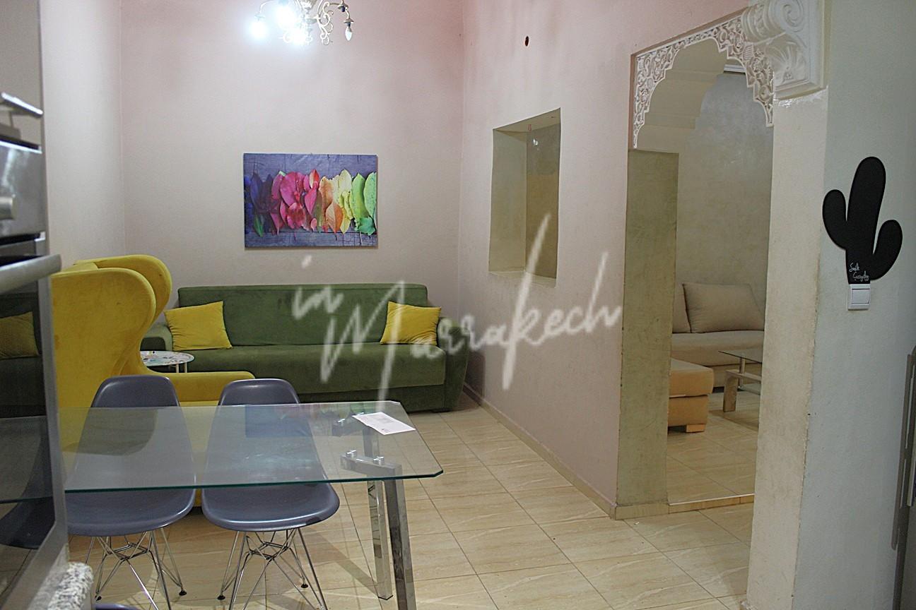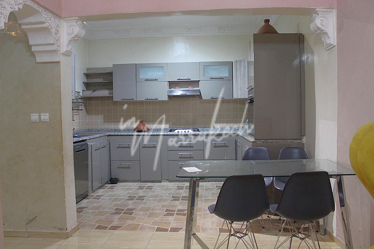 Description : Votre agence immobilière InMarrakech à le plaisir de vous proposer une maison a Louer semi meublé comprenant devant un espace extérieur, une entrée, toilette réception, deux salons, cuisine américaine, coin salle à manger et à l’étage trois chambres et une salle d’eau et au-dessus la terrasse