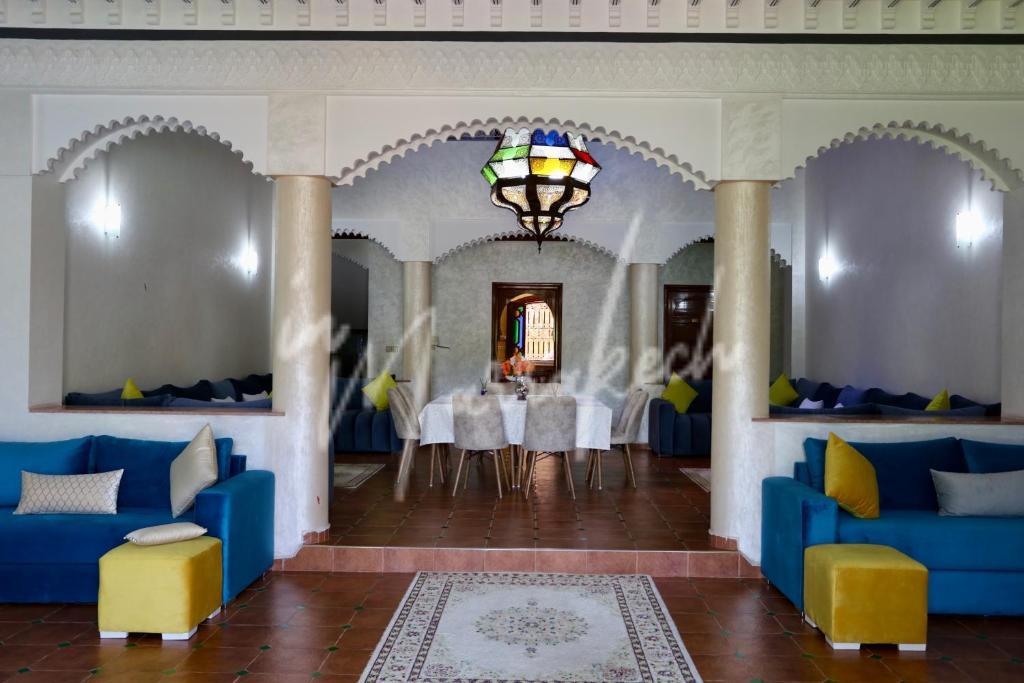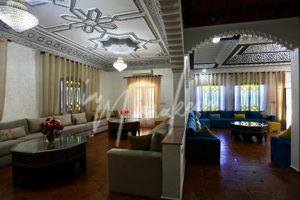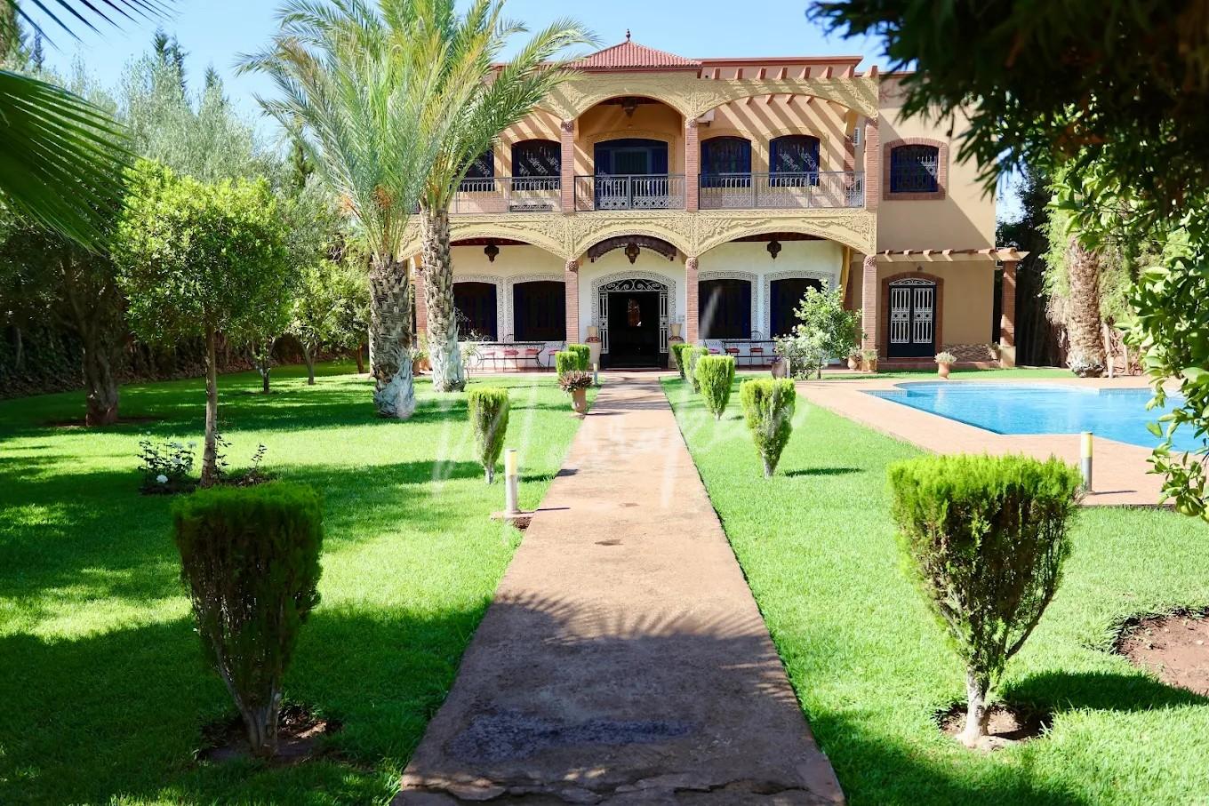 Description : Votre agence immobilière InMarrakech à le plaisir de vous proposer une maison d’hôte en Location Gérance comprenant sept chambres spacieuses avec salle de bain, trois salons dont un avec cheminée, une grande cuisine équipée, réception, salle polyvalente style boite de nuit idéale pour soirées, événements ou séminaires.