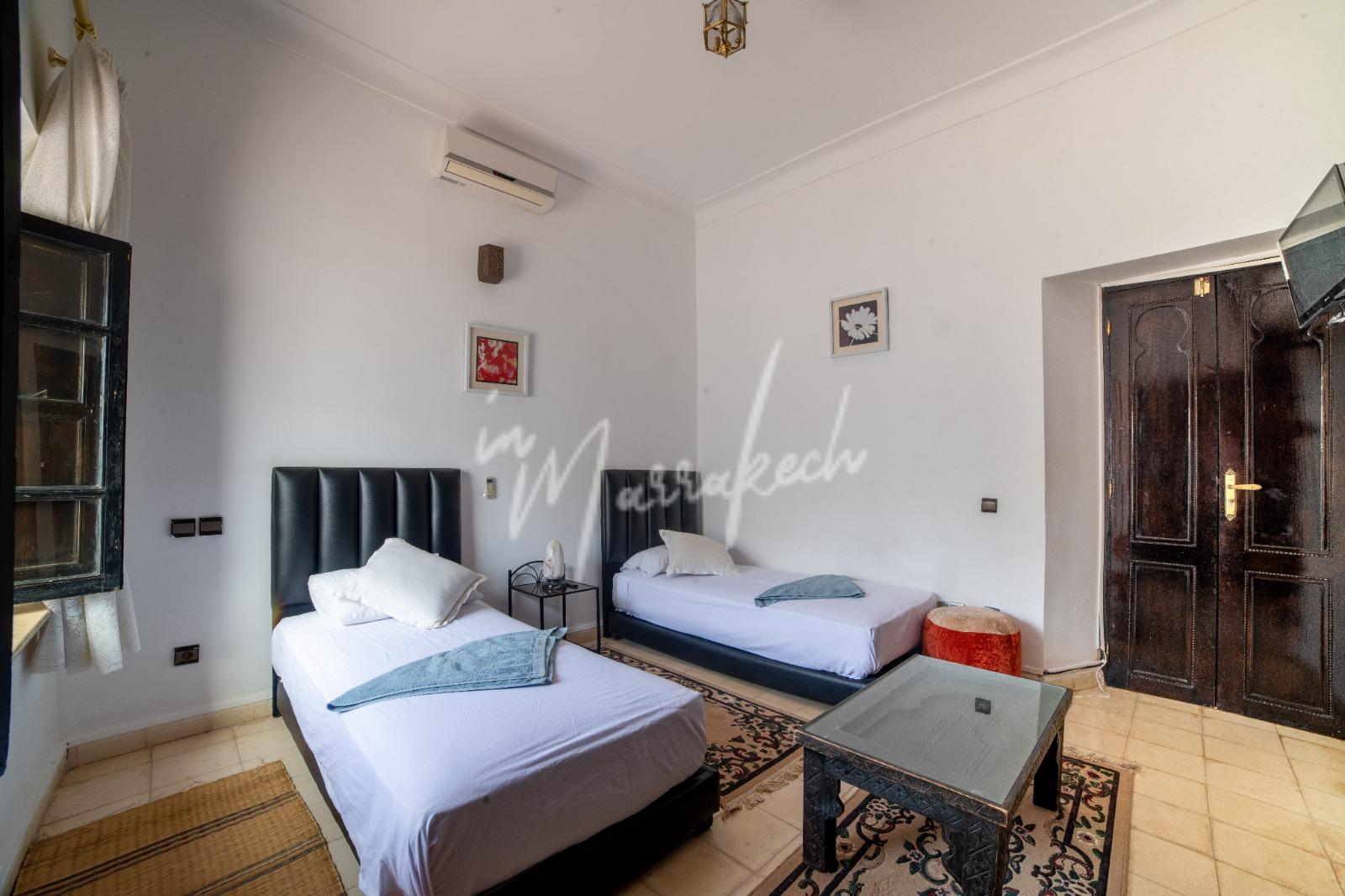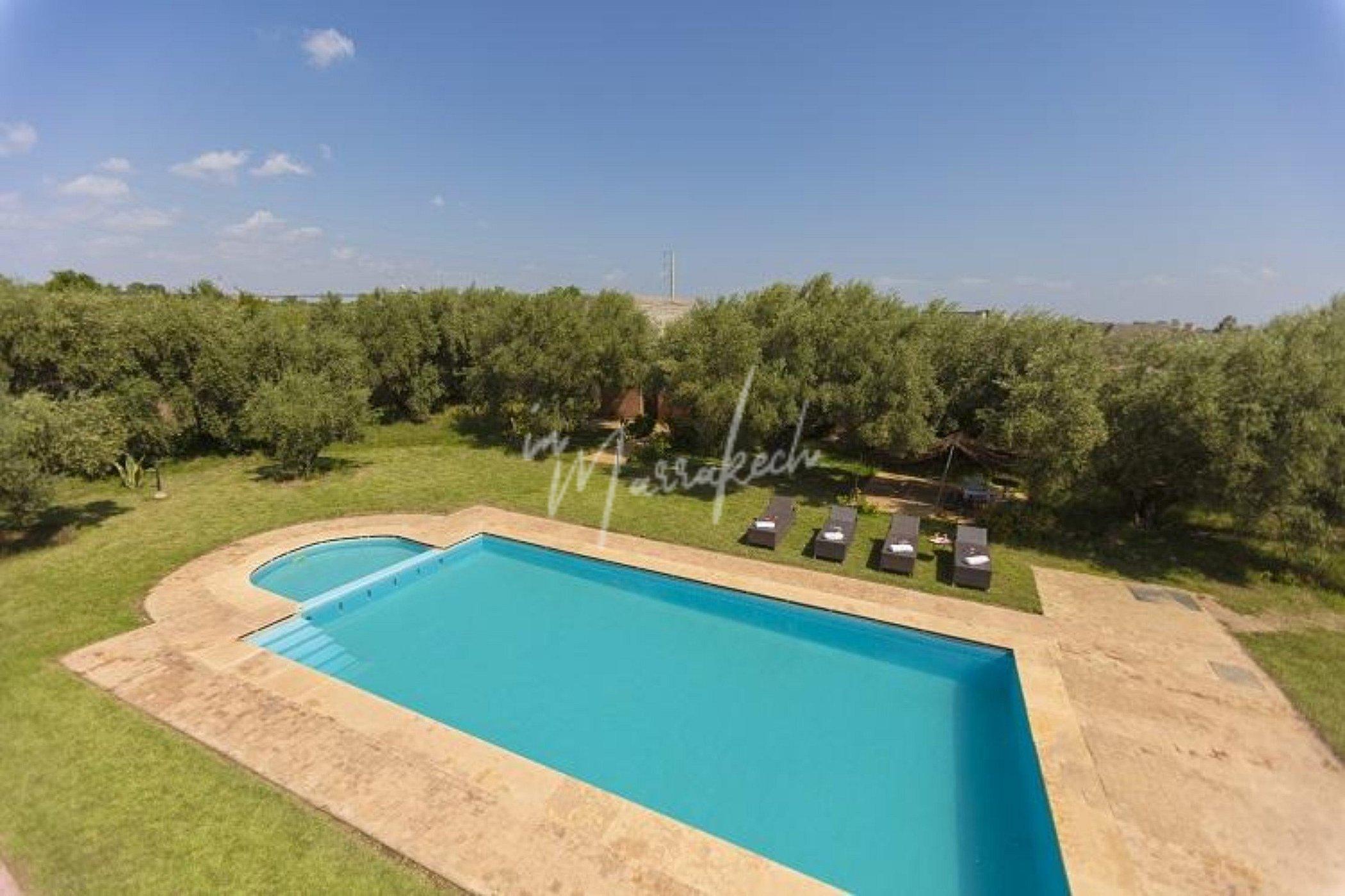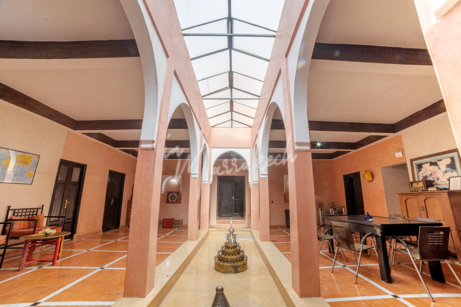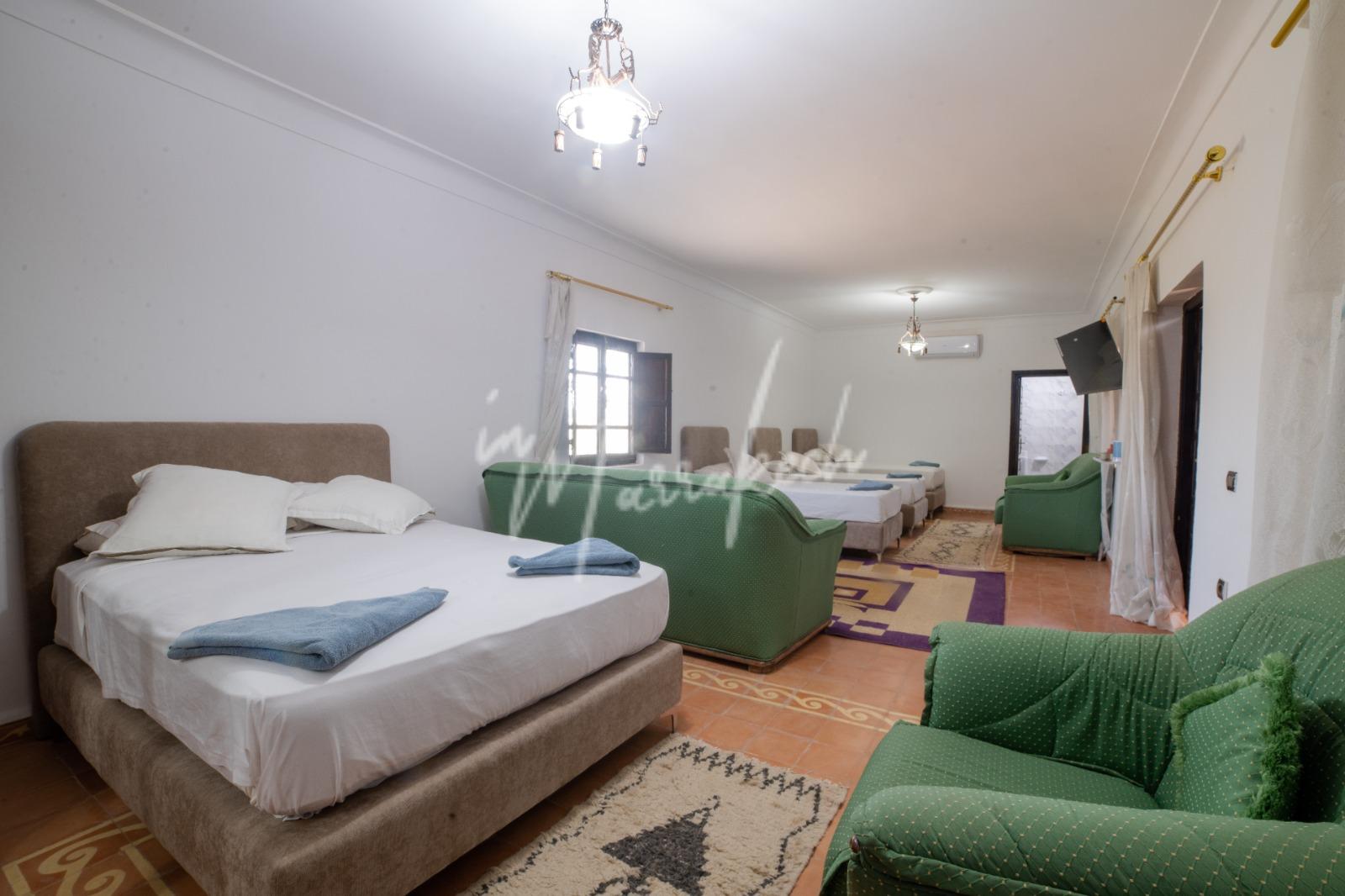 Description : Votre agence immobilière InMarrakech à le plaisir de vous proposer une maison d’hôte a Louer en Location Gérance sur la route d’Agadir sur un terrain d’environ 5000m² comprenant sept chambres (quatre au Rdc et trois à l’étage). Salon, patio. Toilette réception
