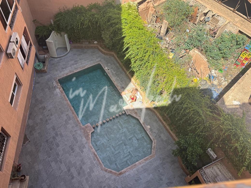 Description : Votre agence immobilière InMarrakech à le plaisir de vous proposer un charmant studio situé au 5e étage en plein cœur de gueliz dans une résidence avec piscine comprenant un salon avec sa cuisine américaine, une salle d’eau , une chambre avec terrasse.