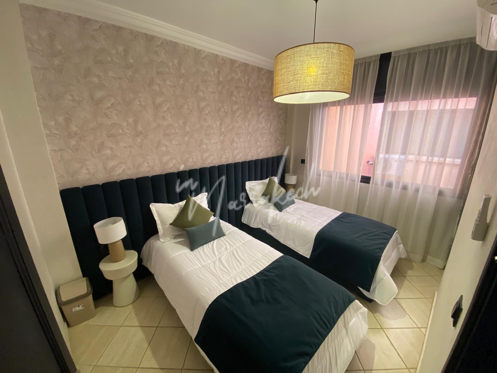 Description :Votre agence immobilière InMarrakech a le plaisir de vous proposer un spacieux appartement de 100 m² situé au 1er étage (N°4) au sein d’une résidence sécurisée.