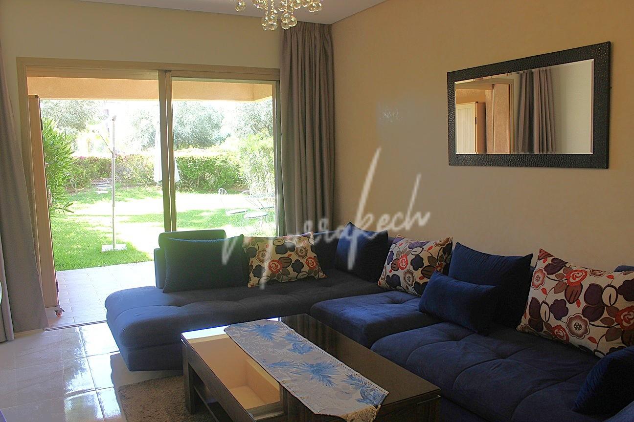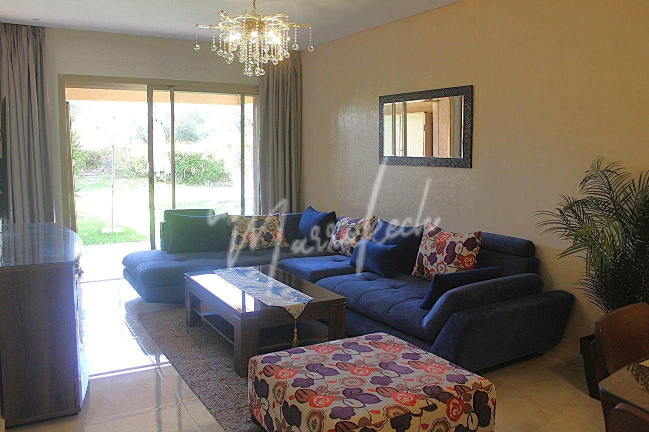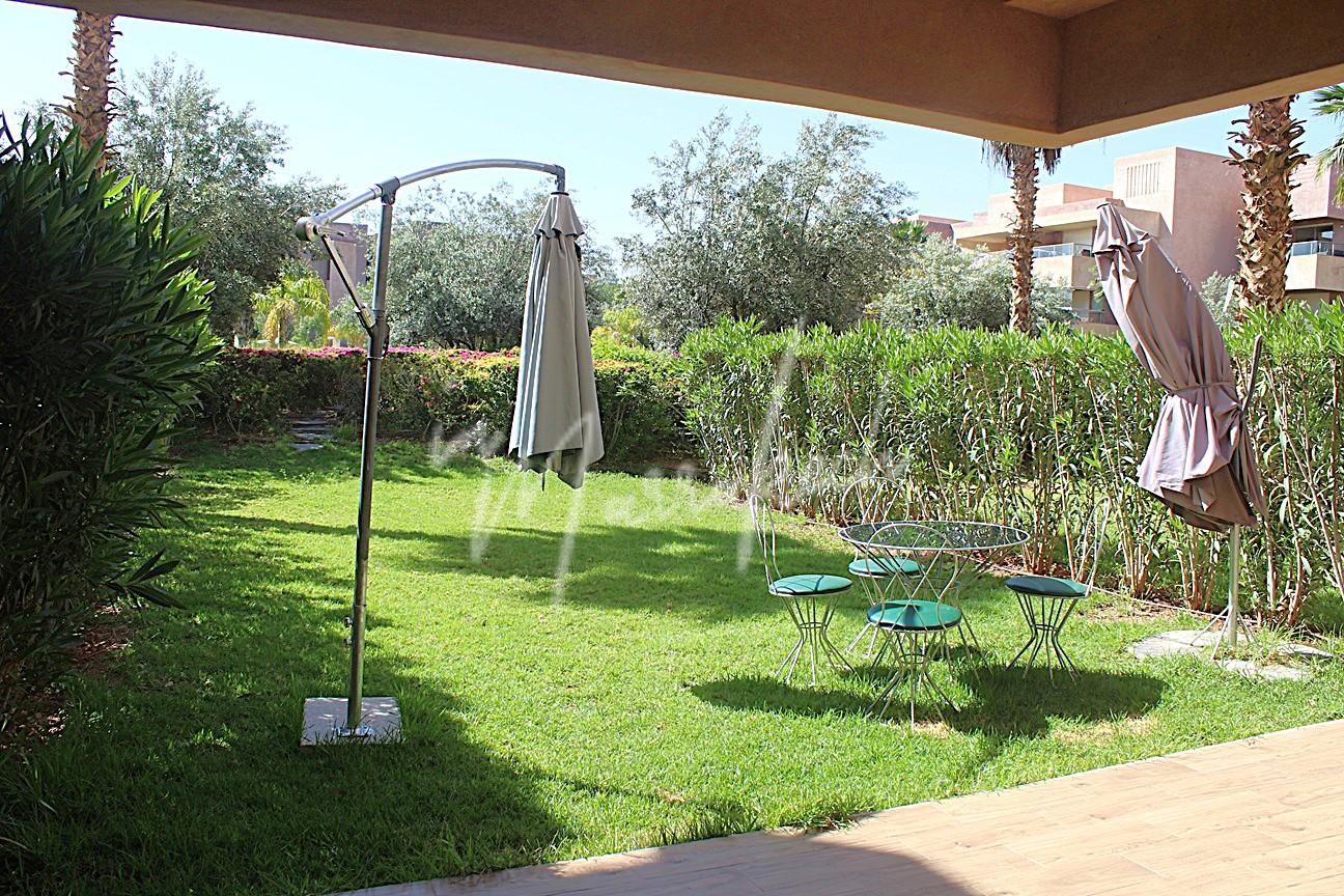 Description : Votre agence immobilière InMarrakech à le plaisir de vous proposer un somptueux appartement avec un beau jardin comprenant : une entrée, salon, cuisine, deux chambres dont une avec salle d’eau et une salle d’eau pour la 2e chambres.