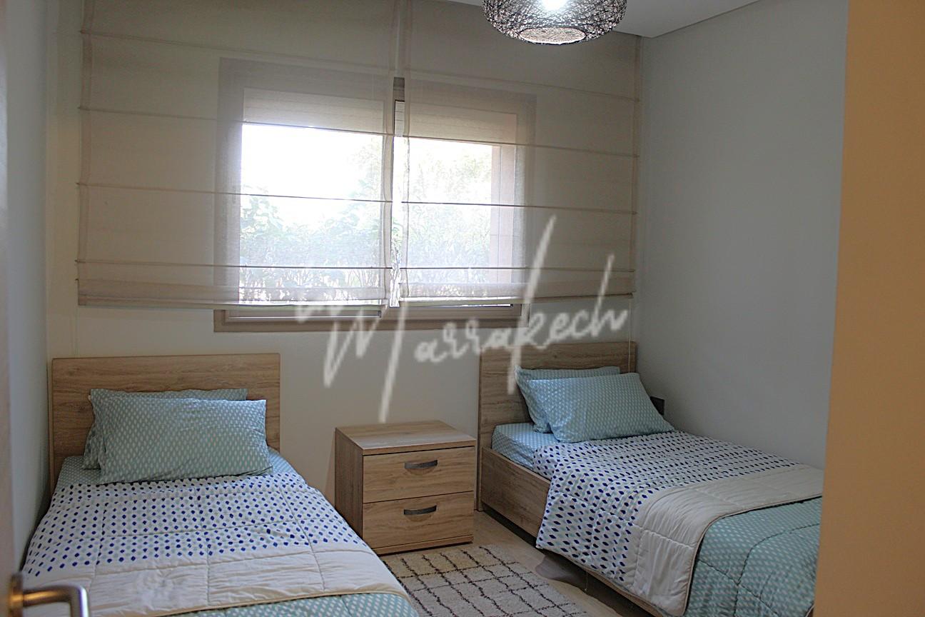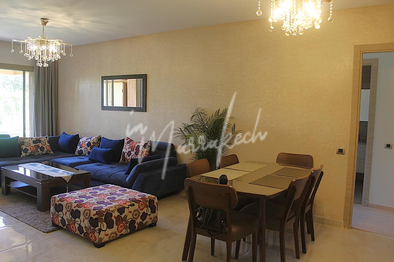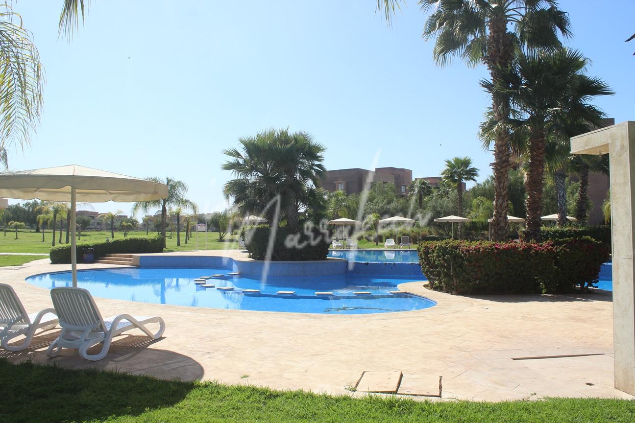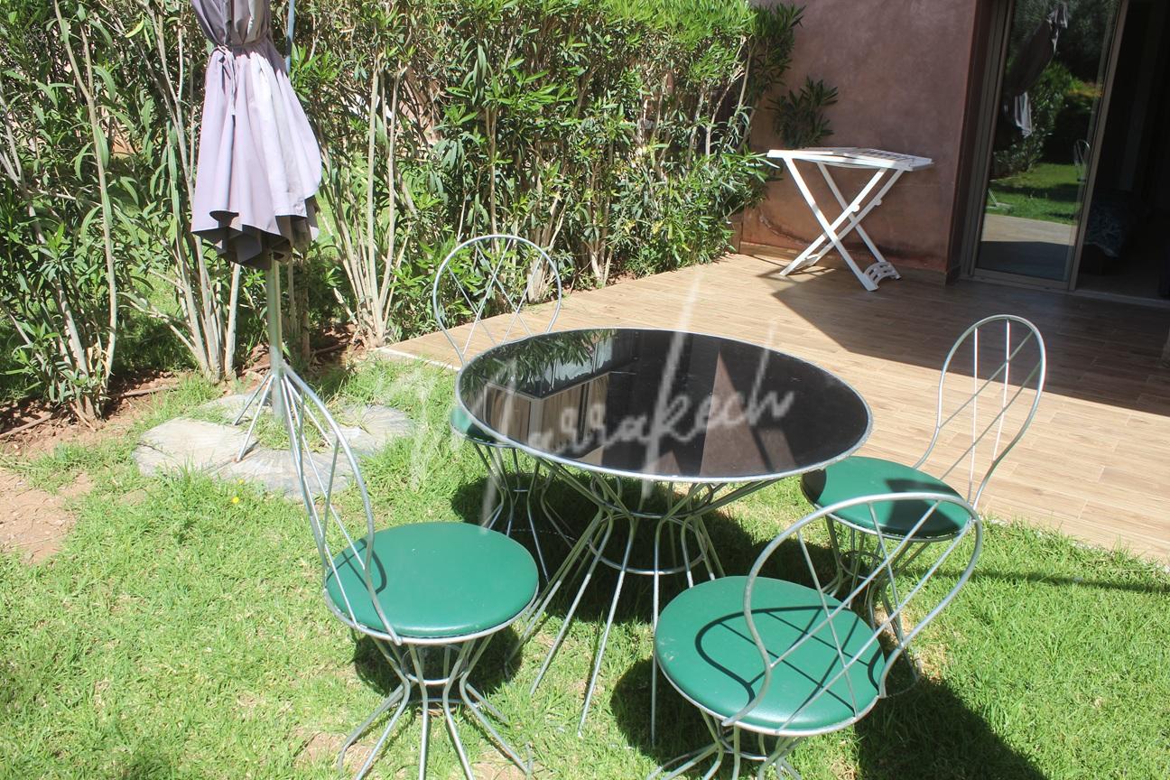 Description : Votre agence immobilière InMarrakech à le plaisir de vous proposer un somptueux appartement avec un beau jardin comprenant : une entrée, salon, cuisine, deux chambres dont une avec salle d’eau et une salle d’eau pour la 2e chambres.