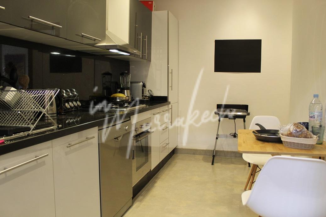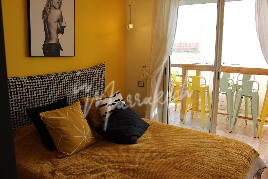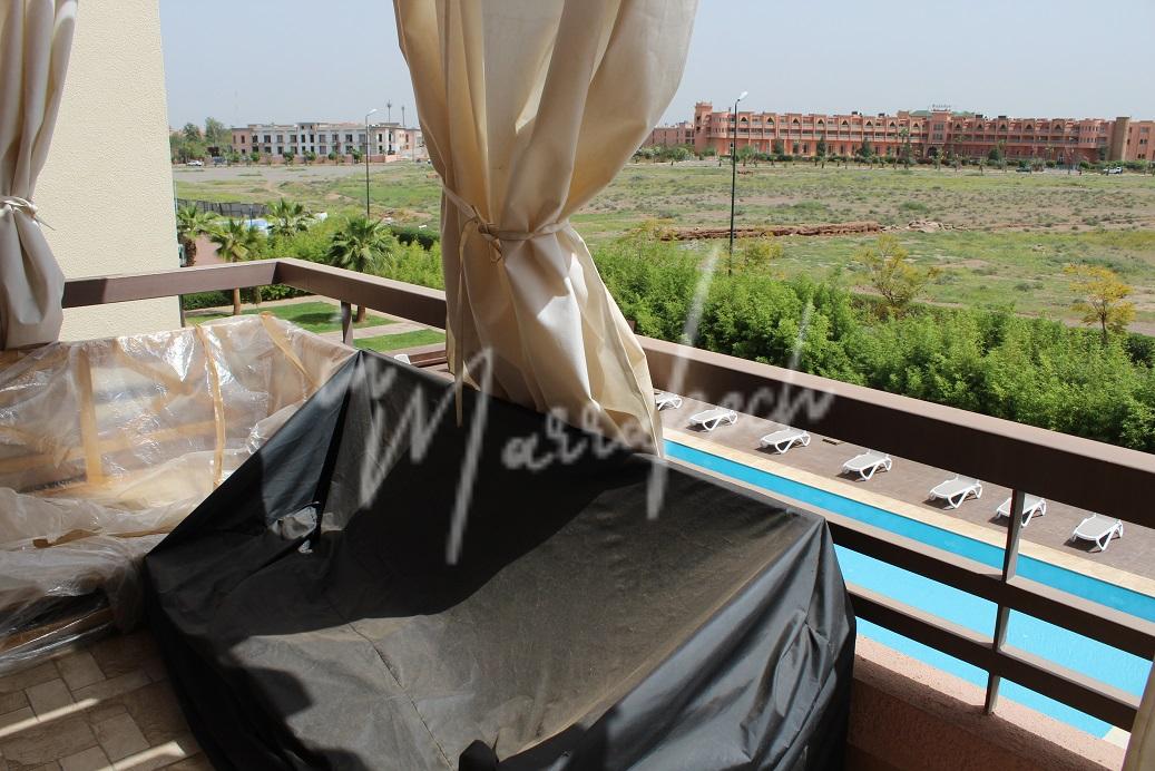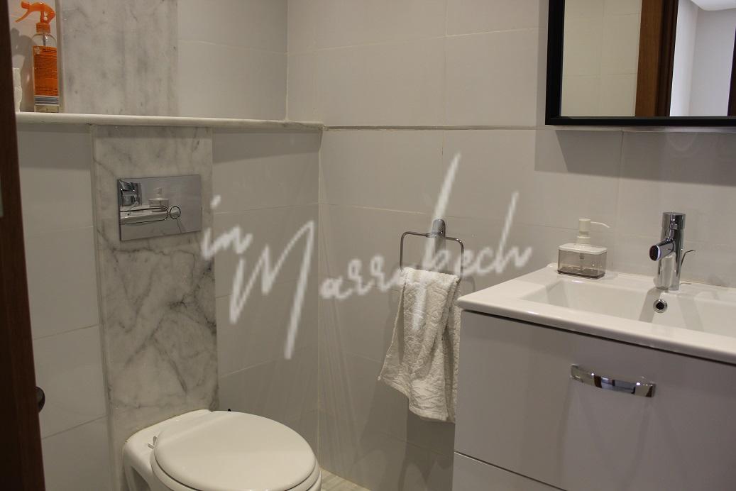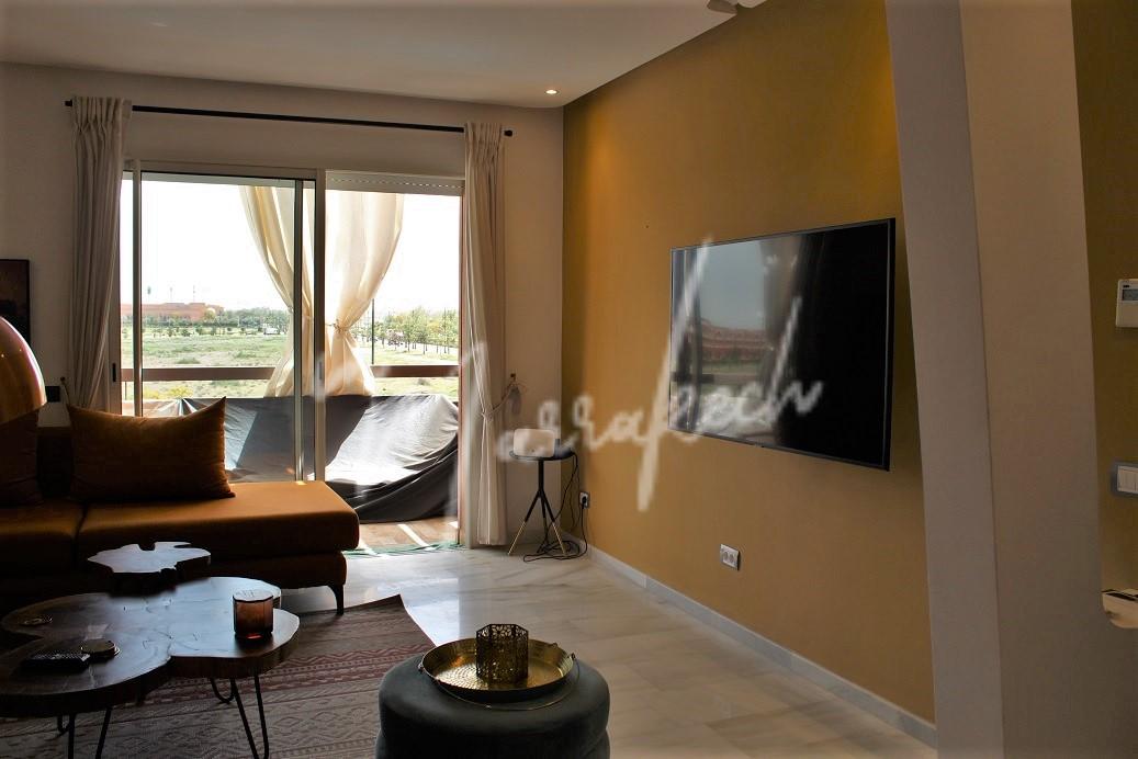 Description : votre agence immobilière InMarrakech vous propose un appartement neuf et meublé avec goût à la location longue durée. Il se trouve dans la zone touristique Agdal, sur l'avenue Mohammed 6. L'appartement situé au 2e étage dans une jolie résidence avec ascenseur. Disposant d'un salon ensoleillé, donnant sur une grande terrasse orientée plein sud sans vis à vis avec vue dégagée sur l’atlas équipée de canapés et dune grande table, de deux chambres dont une parentale avec salle d’eau et petite terrasse, dune 2e salle d’eau pour l’autre chambre, une cuisine bien équipée avec buanderie. La résidence est sécurisée, et est dotée de piscines et de jardins arborés.