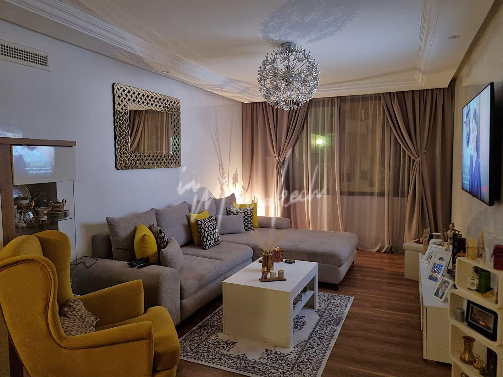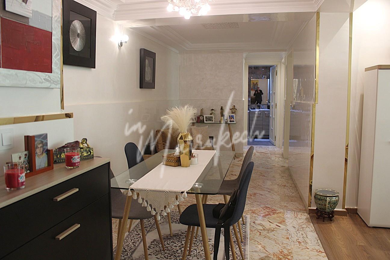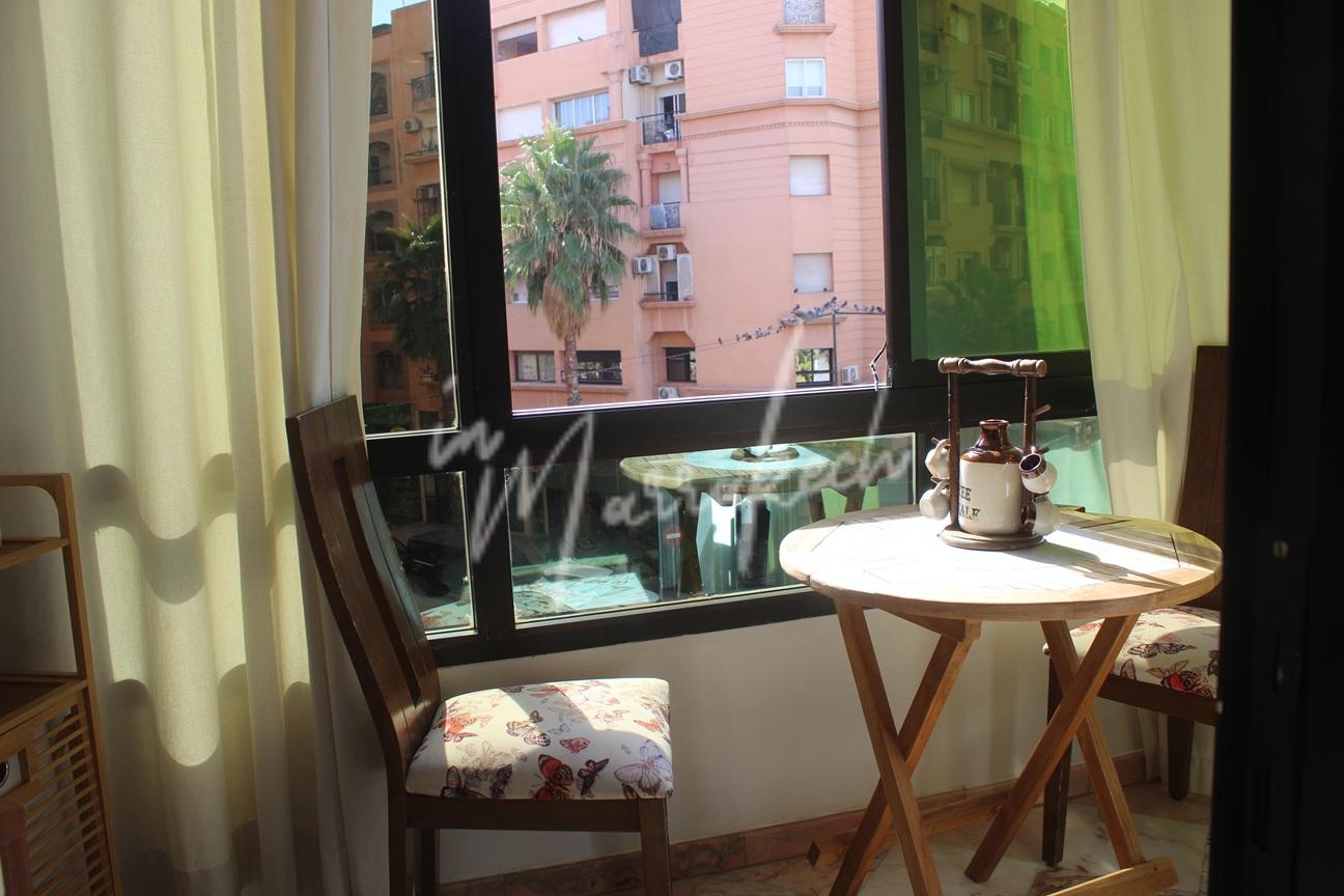 Description : Votre agence immobilière InMarrakech à le plaisir de vous proposer un superbe appartement au 2e étage très bien situé en plein cœur de Guéliz, entièrement rénové équipé de double vitrage, parquet et marbre au sol comprenant une entrée, un beau salon, deux grande chambres, toilette réception, salle d’eau, cuisine avec petite terrasse