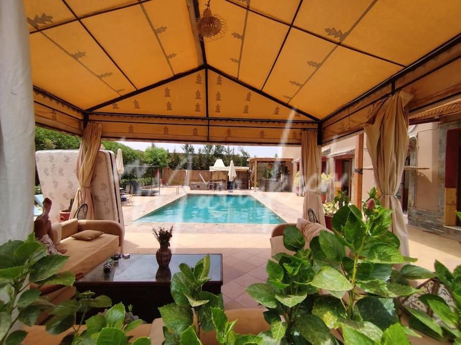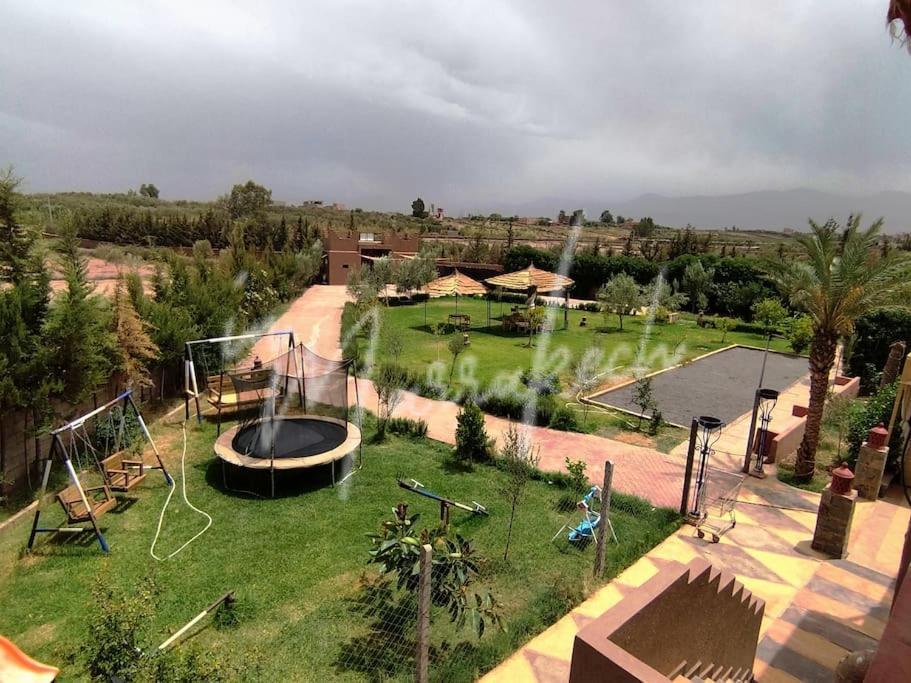 Description : Votre agence immobilière InMarrakech à le plaisir de vous proposer une auberge à Louer en Location Gérance route de tahanaoute situé a 20mn de Marrakech comprenant au rdc trois chambre avec salle d’eau, deux salons et un bar deux cuisine et a l’étage deux chambres avec salle d’eau et une grande terrasse, une 6e chambre est en préparation. Cette villa comprend une piscine privée, un jardin, un barbecue, un parking privé. L’établissement dispose aussi d’une piscine intérieure et d’une aire de jeux.