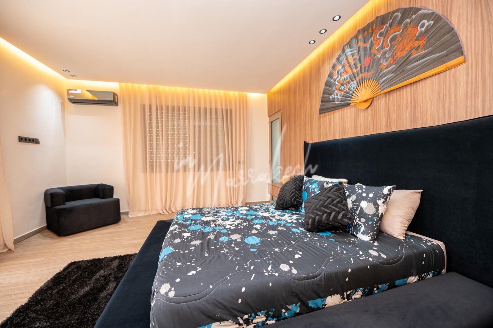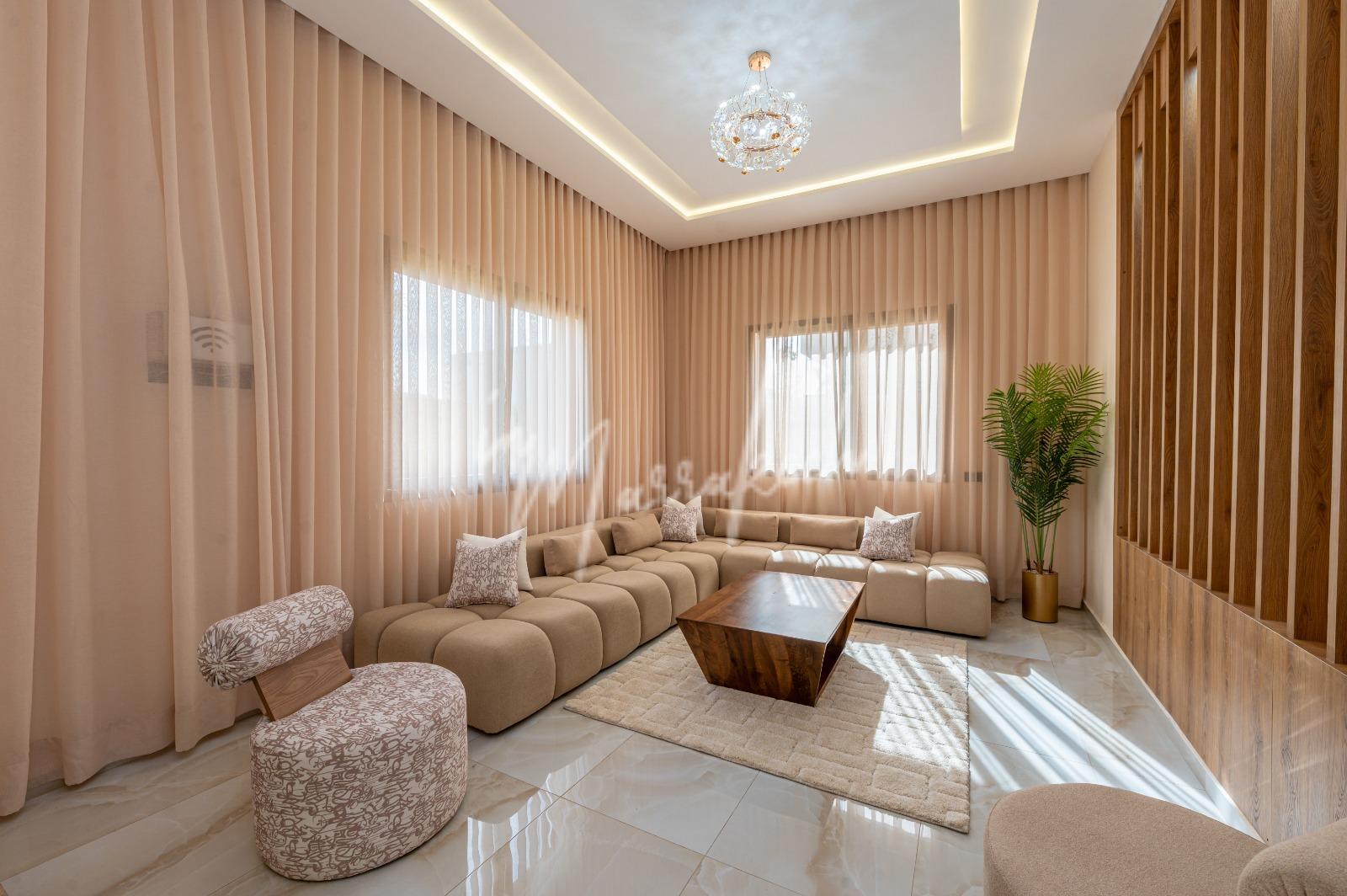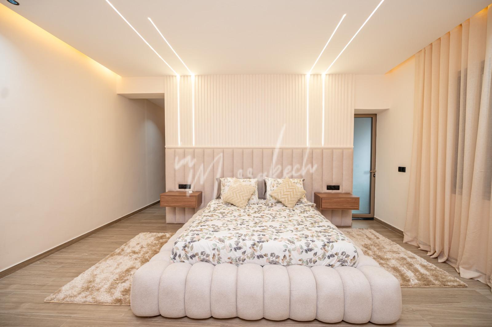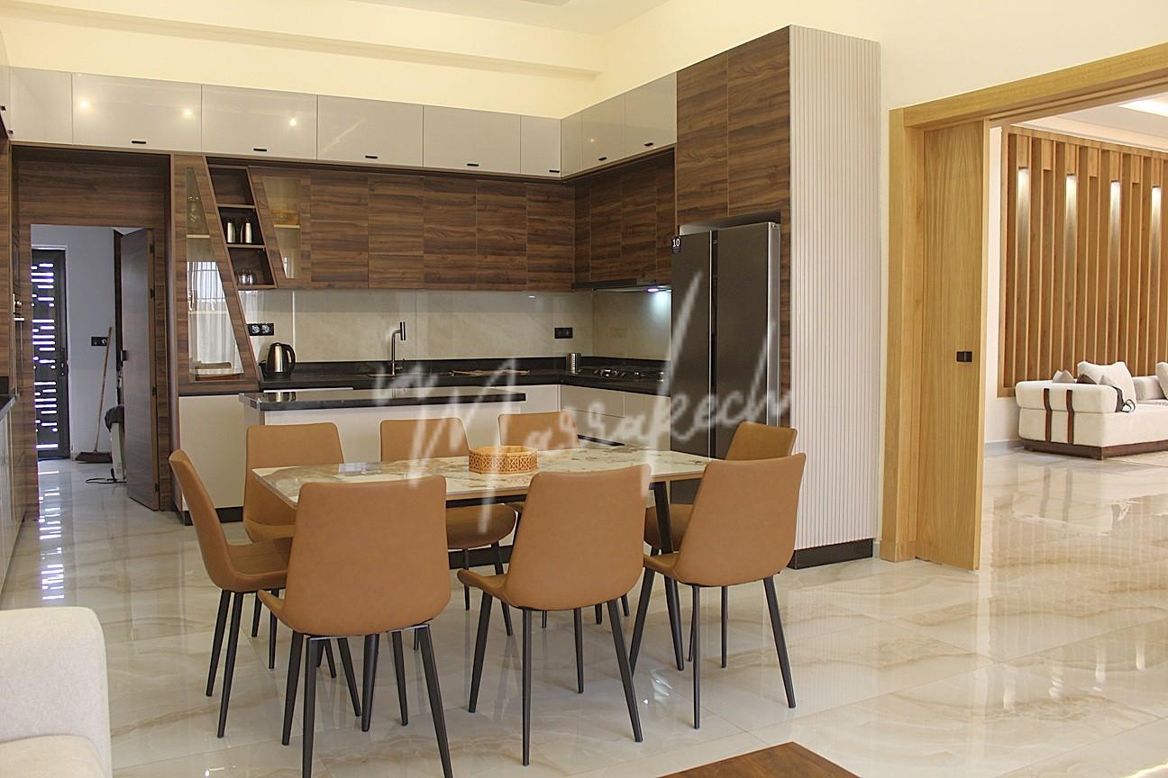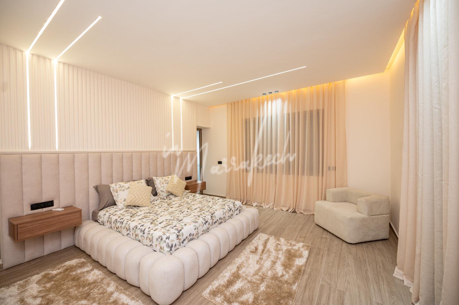 Description : Votre agence immobilière InMarrakech à le plaisir de vous proposer une belle et grande villa situé dans un domaine comprenant au rdc deux salons, cuisine américaine avec un autre salon, toilette réception et à l’étage quatre chambres et trois salle d’eau.