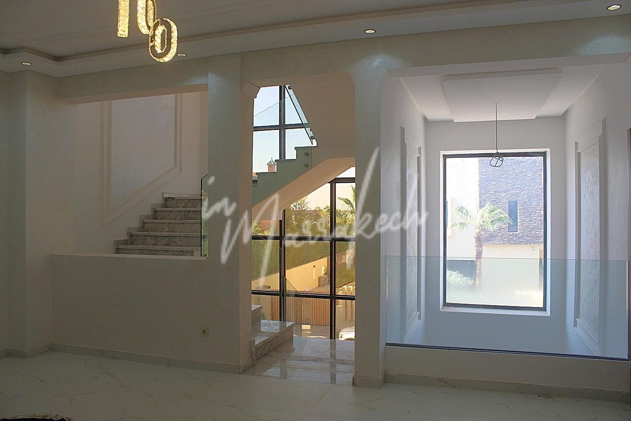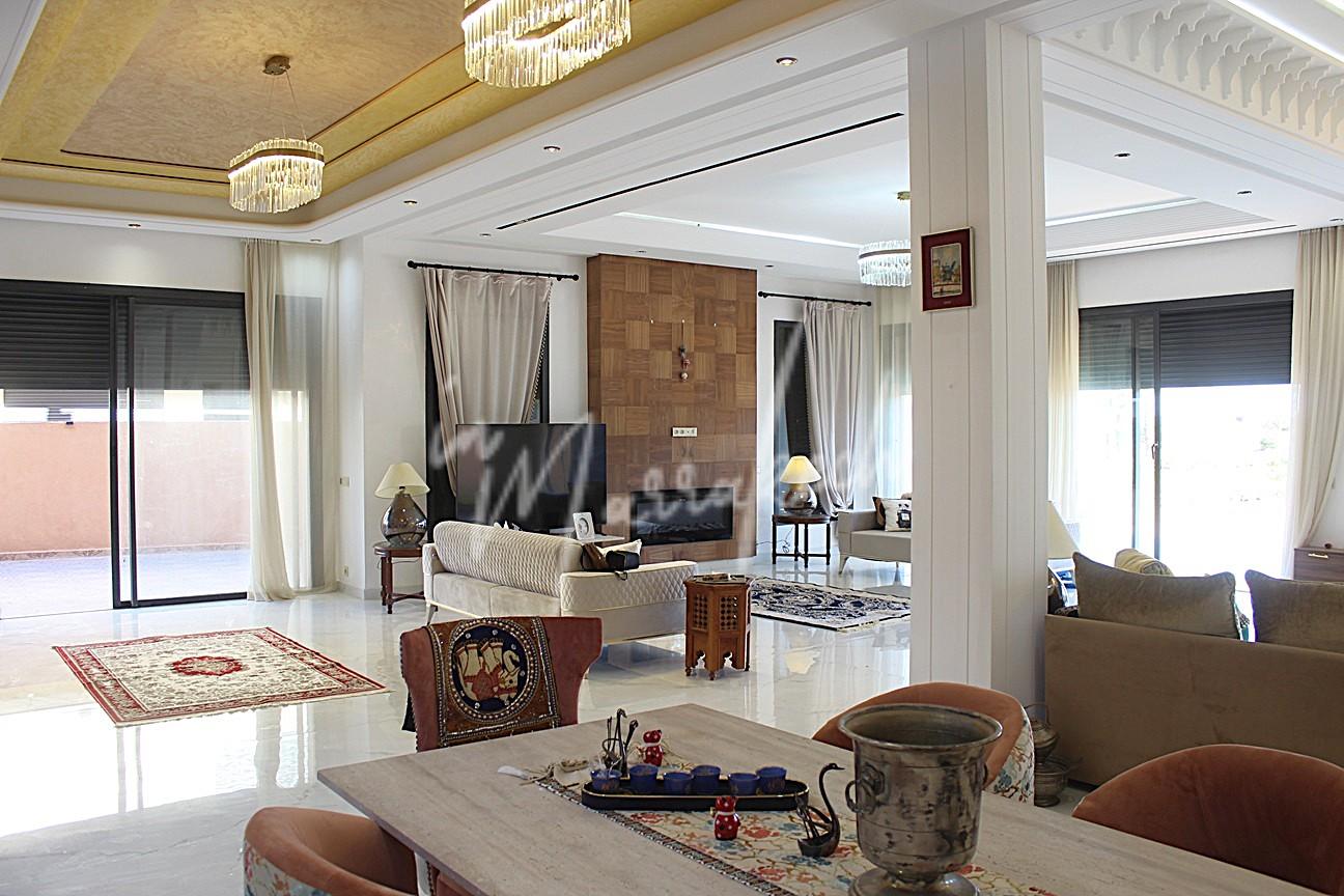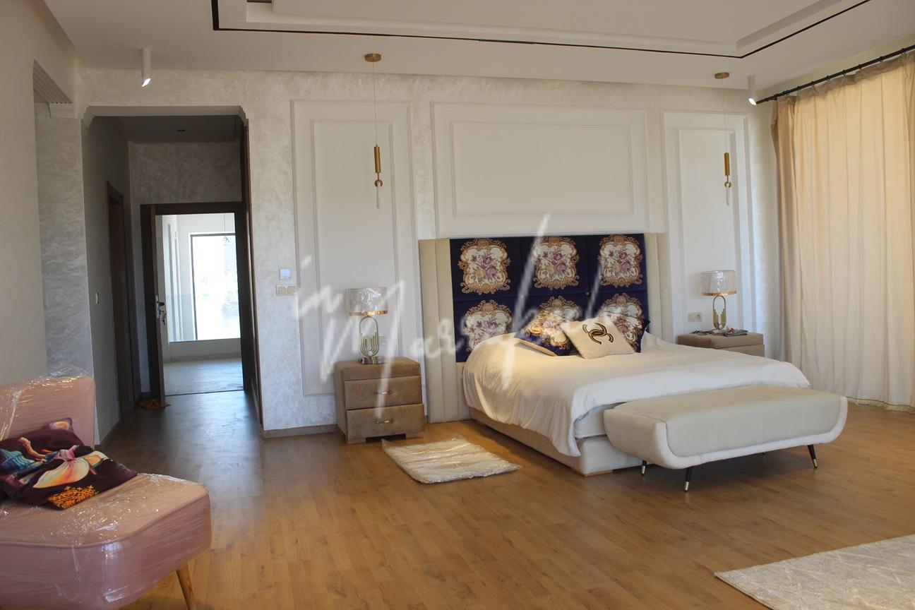 Description : Votre agence immobilière InMarrakech à le plaisir de vous proposer une grande villa sur le golf Argan comprenant une entrée, une vaste pièce de vie, toilette réception, une chambre avec salle d’eau. A l’étage trois chambres avec salle d’eau dont une très grande chambre parentale avec terrasse grand dressing et grande salle d’eau et au sous-sol une cuisine américaine, salon, chambre avec salle d’eau pouvant servir de chambre de personnel.