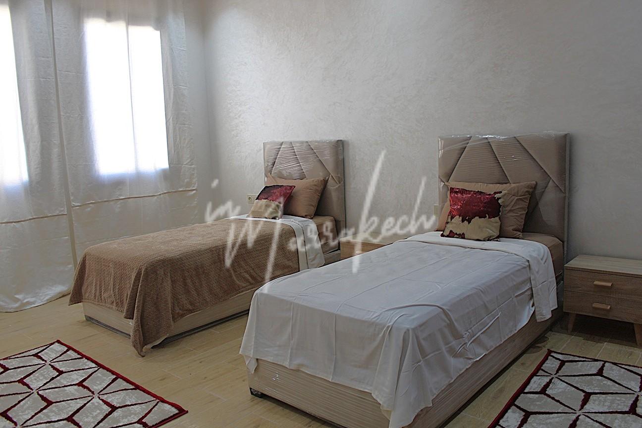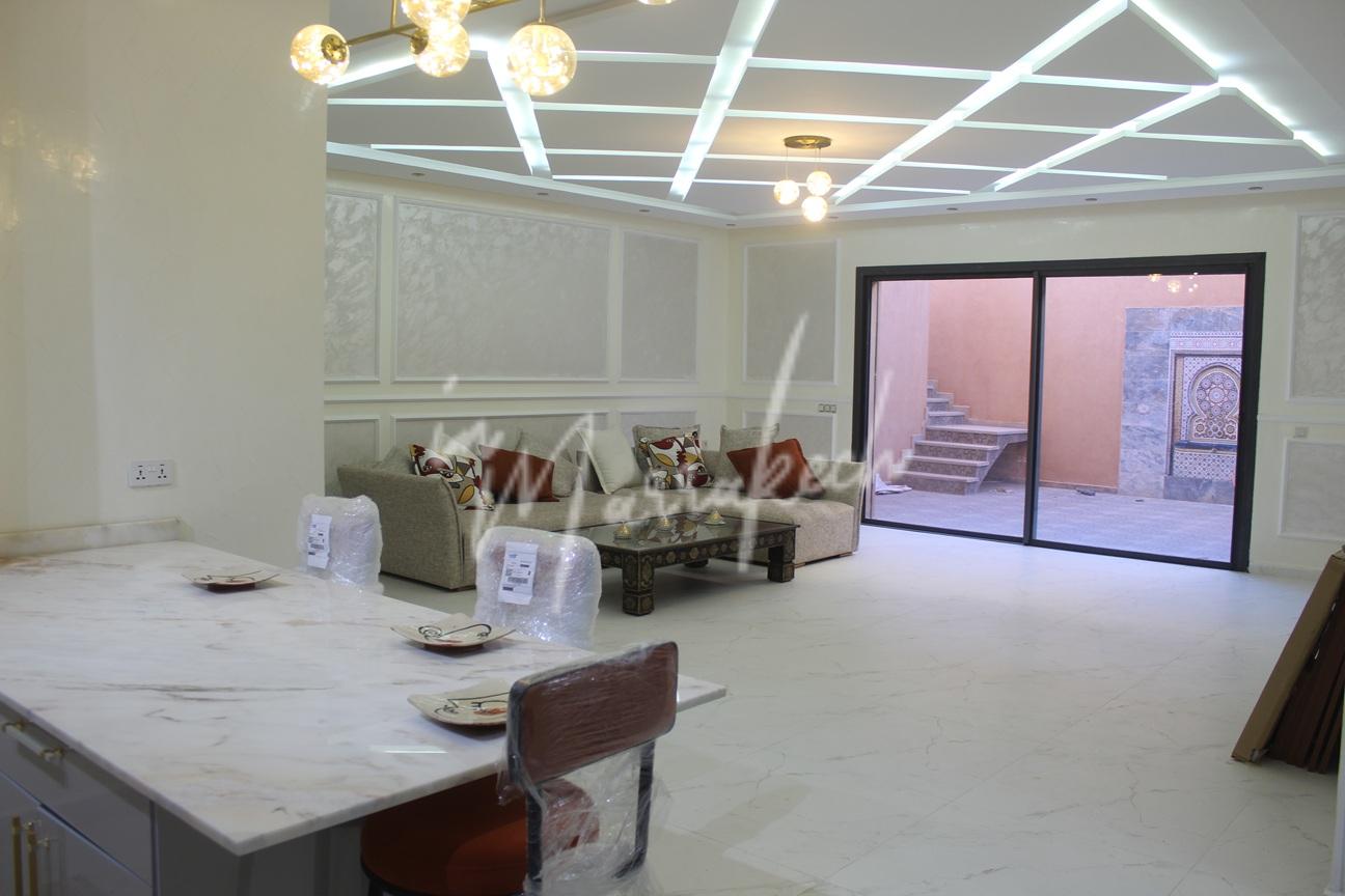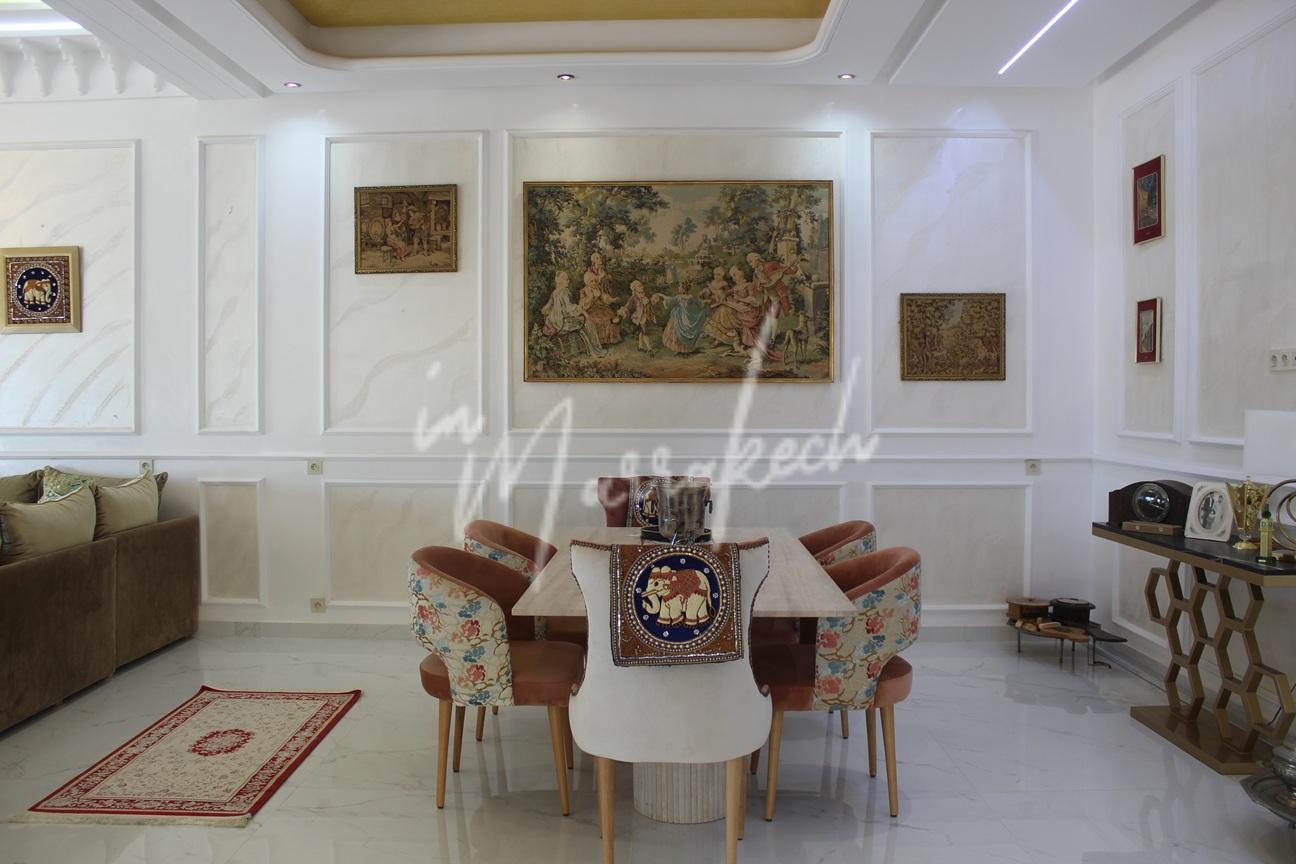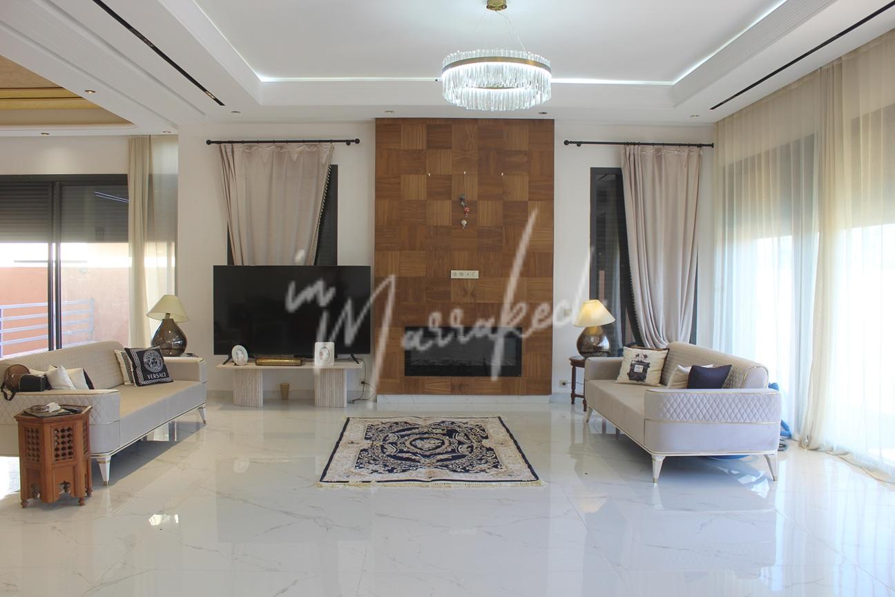 Description : Votre agence immobilière InMarrakech à le plaisir de vous proposer une grande villa sur le golf Argan comprenant une entrée, une vaste pièce de vie, toilette réception, une chambre avec salle d’eau. A l’étage trois chambres avec salle d’eau dont une très grande chambre parentale avec terrasse grand dressing et grande salle d’eau et au sous-sol une cuisine américaine, salon, chambre avec salle d’eau pouvant servir de chambre de personnel.