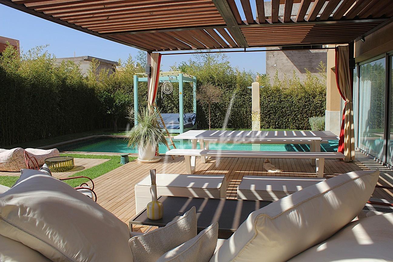 Description : Votre agence immobilière InMarrakech à le plaisir de vous proposer à 10 km du centre de Marrakech, cette villa récente dans de 400 m² habitables sur 600 m² de terrain une résidence offre un cadre de vie moderne, confortable et parfaitement fonctionnel.