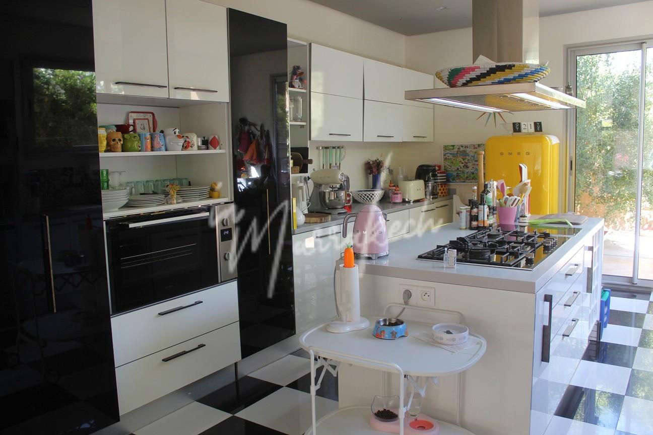 Elle est équipée d’un système domotique complet, de volets électriques, d’une climatisation centrale, de panneaux solaires, de caméras intérieures et extérieures, ainsi que d’une citerne de réserve d’eau. En cas de coupure, l’installation permet une autonomie électrique partielle : Internet, cuisine et équipements essentiels restent fonctionnels.
