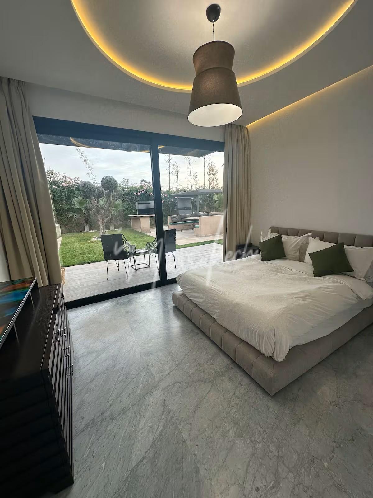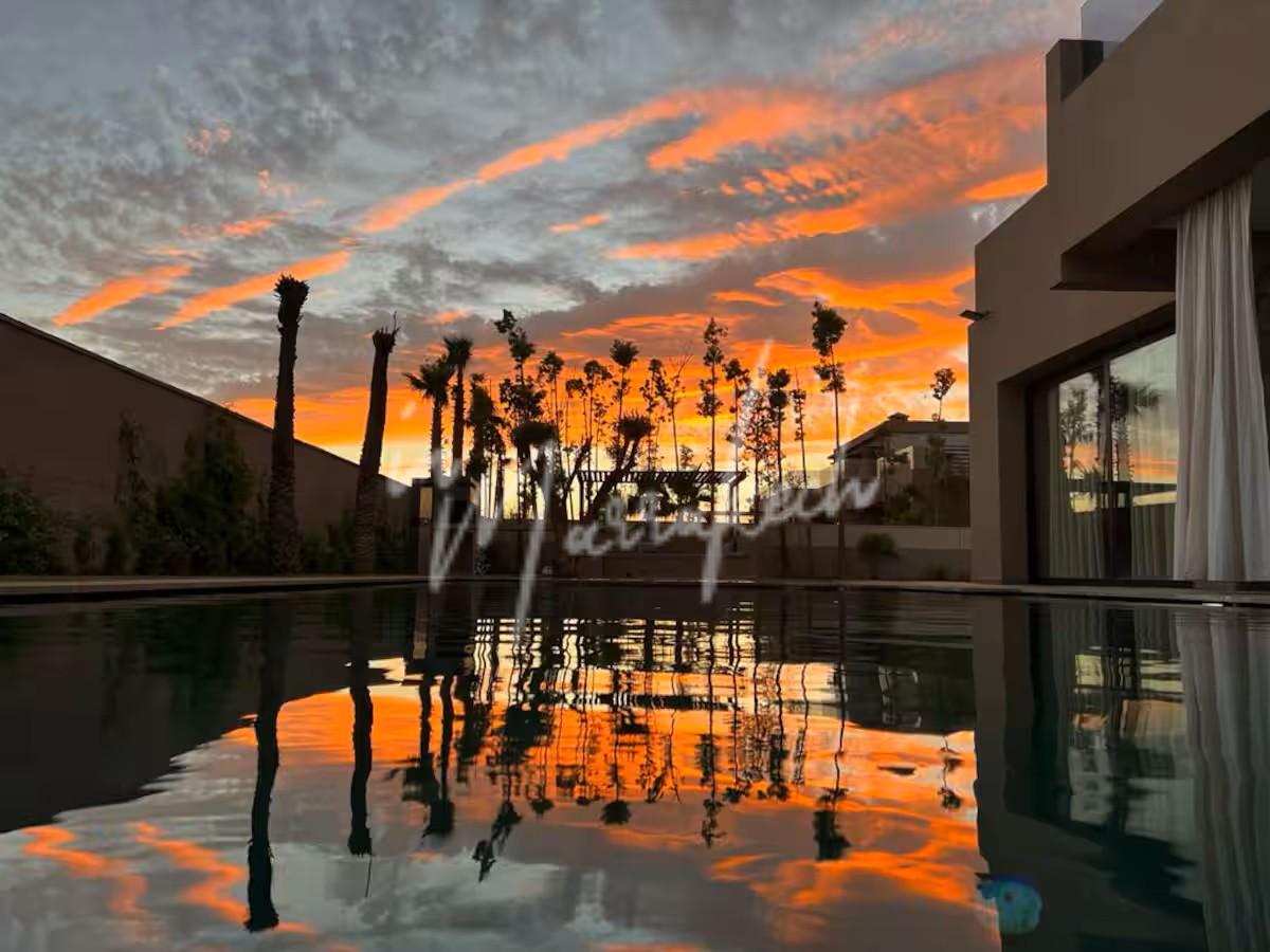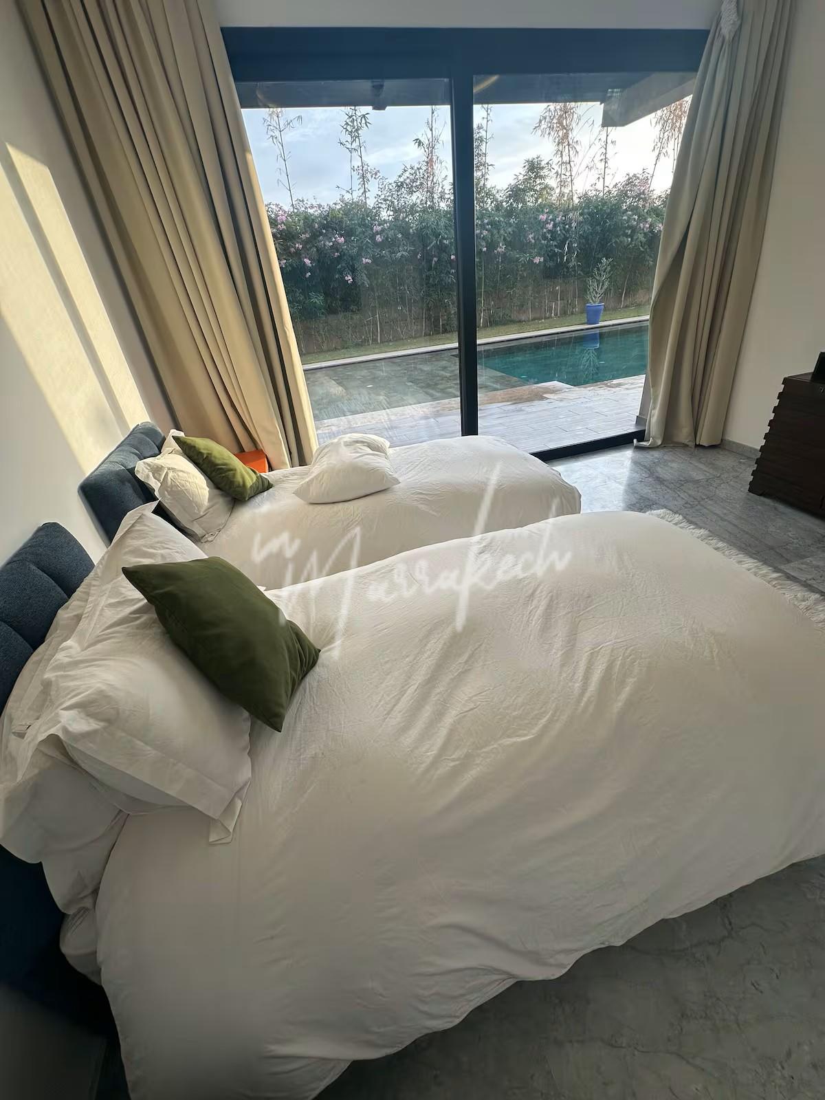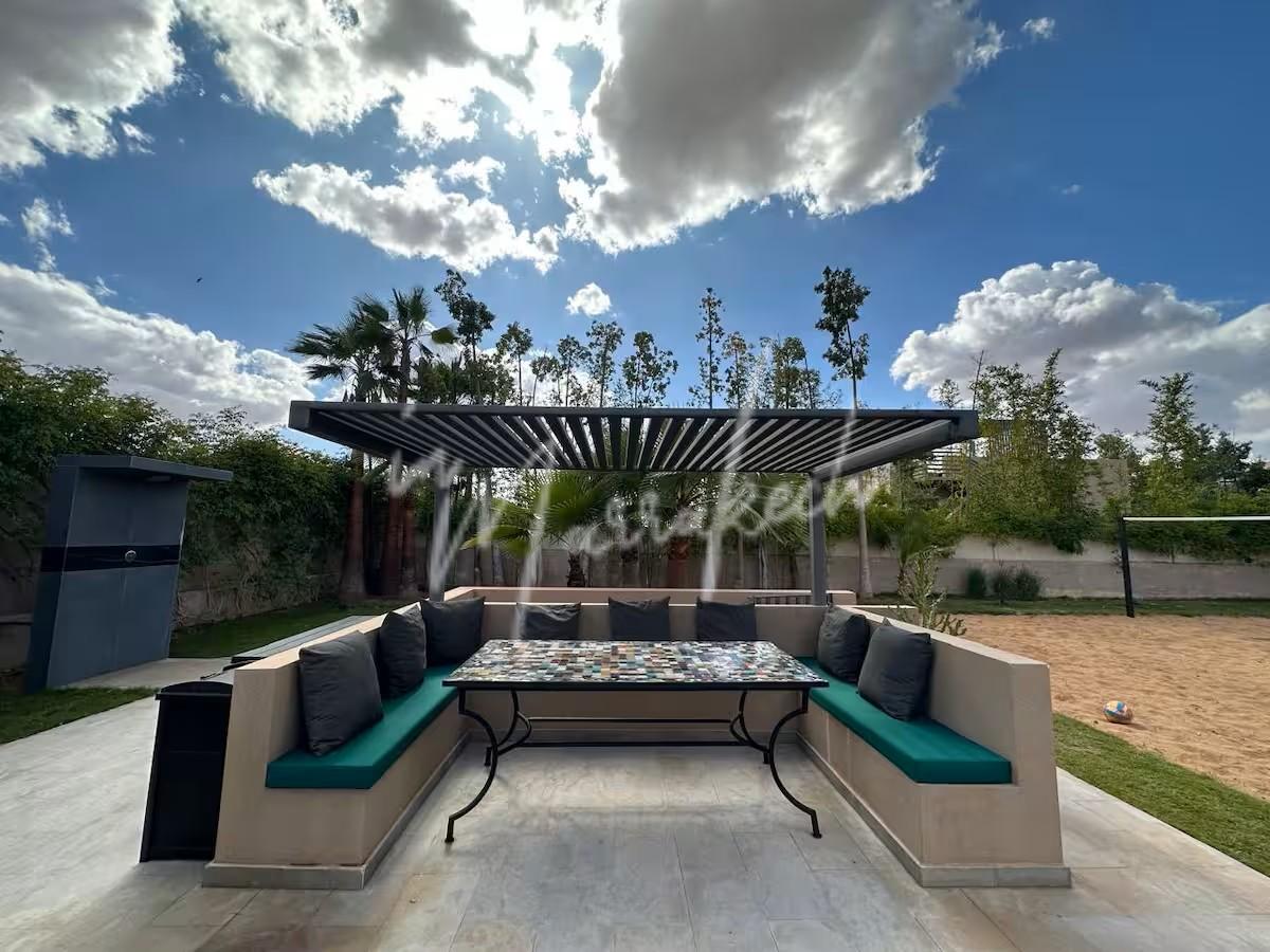 Description : Votre agence immobilière InMarrakech à le plaisir de vous proposer un cette luxueuse villa idéale pour les familles , elle est équipée d'une piscine (chauffée en hiver), d'un jacuzzi, d'un terrain de volley-ball et dans la résidence d'un terrain de padel.