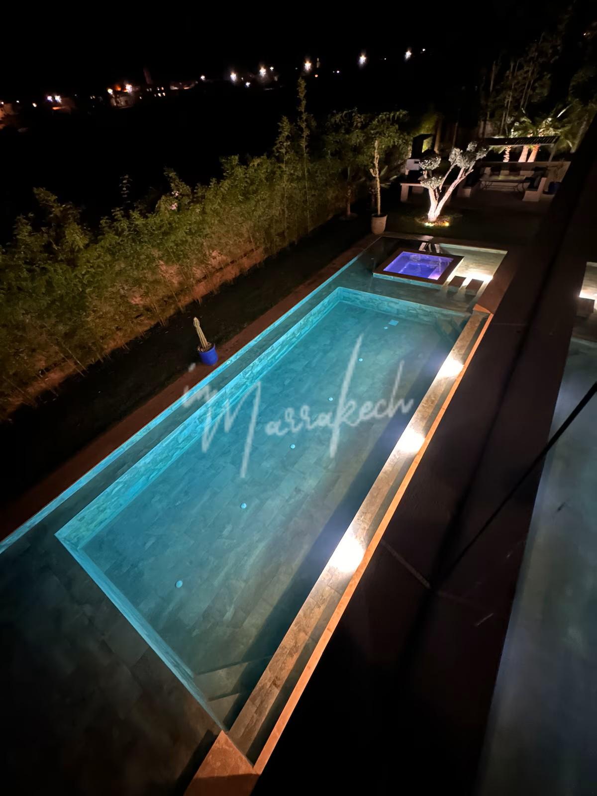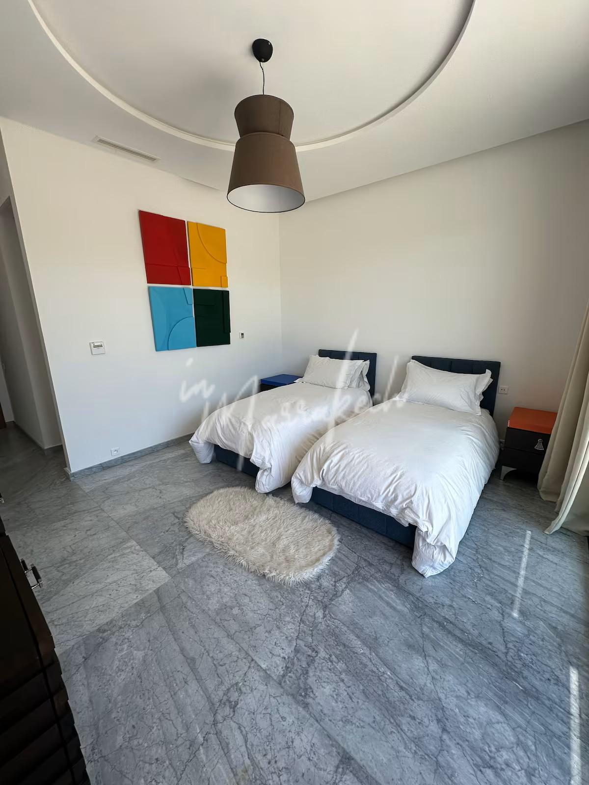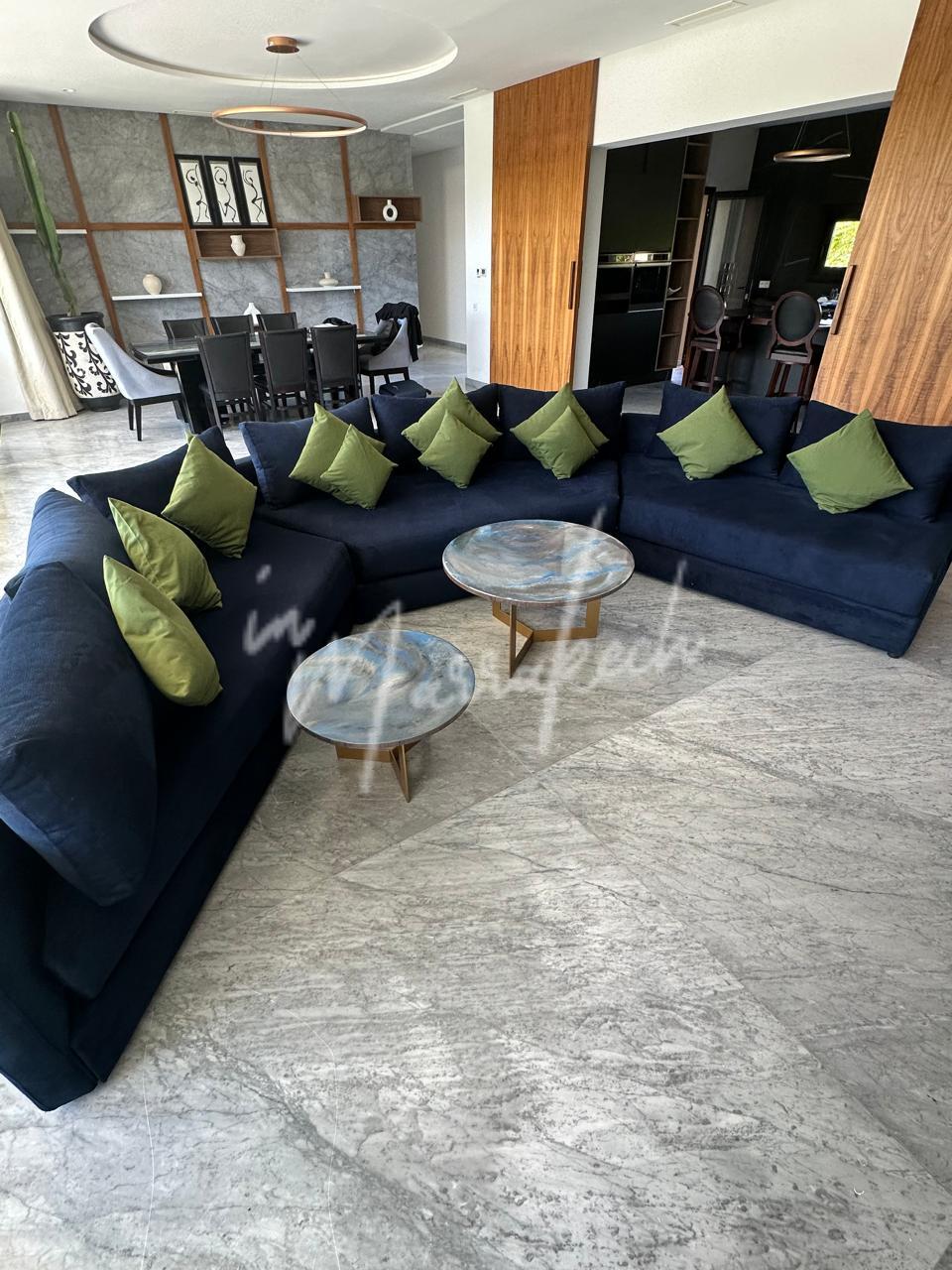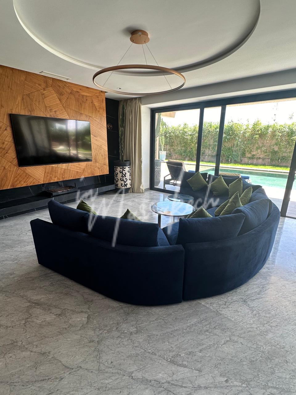 Description : Votre agence immobilière InMarrakech à le plaisir de vous proposer un cette luxueuse villa idéale pour les familles , elle est équipée d'une piscine (chauffée en hiver), d'un jacuzzi, d'un terrain de volley-ball et dans la résidence d'un terrain de padel.