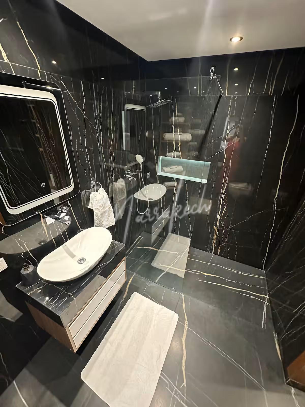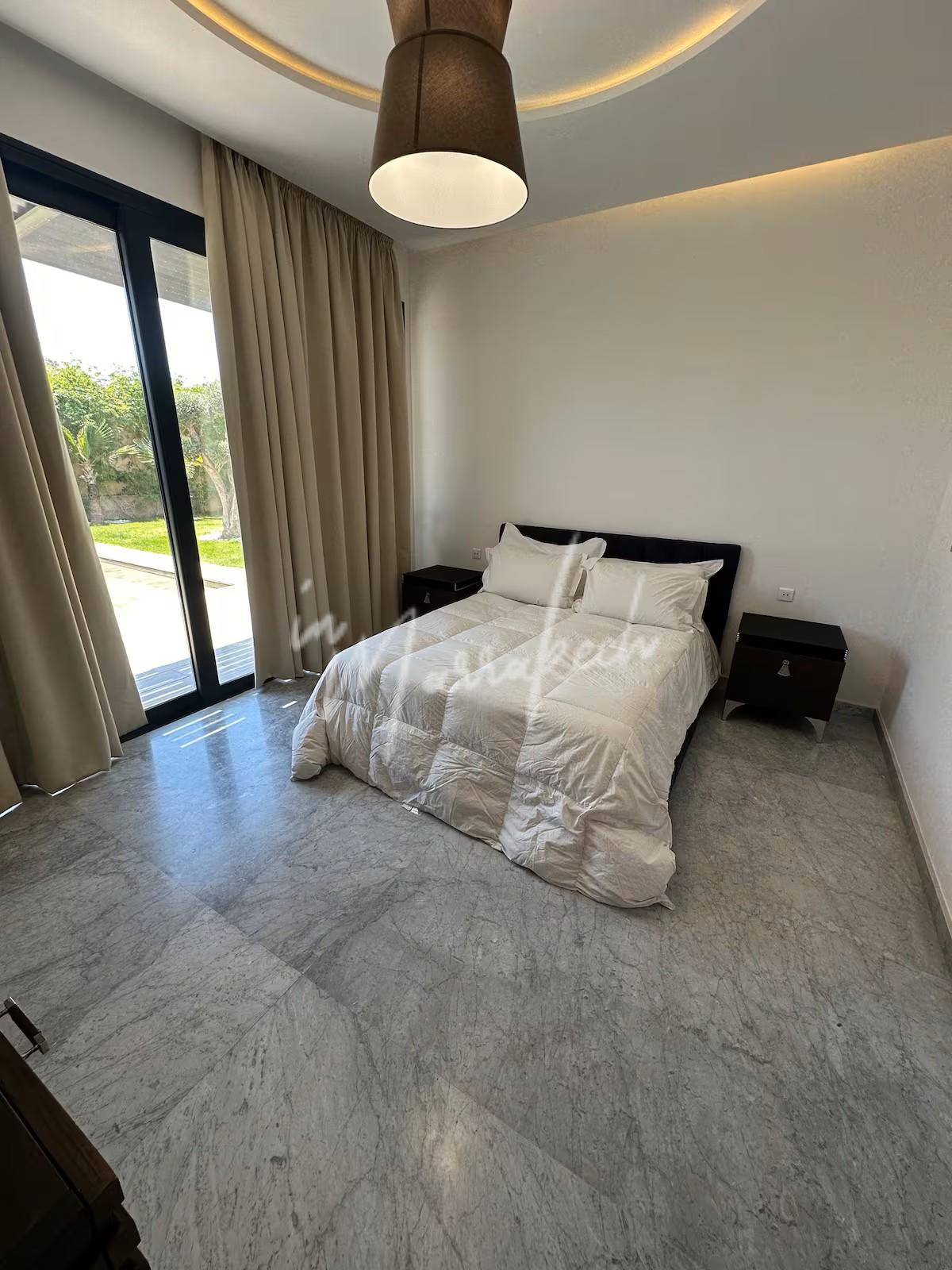 Cinq suites exceptionnelles dont quatre au rdc et une en rooftop avec une grande terrasse .Chaque suite dispose d'une salle de bain privative et d'un dressing. Téléviseurs connectés et Wi-Fi .Une belle cuisine américaine donnant sur le salon et toilette réception