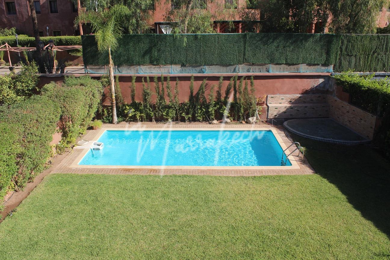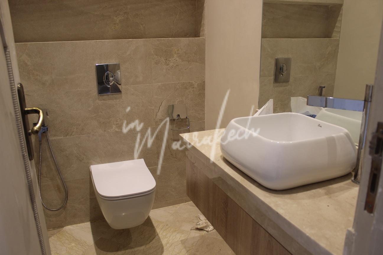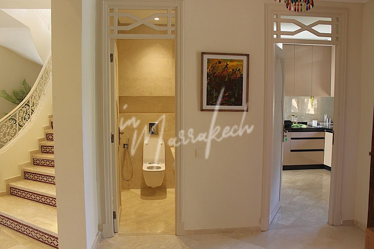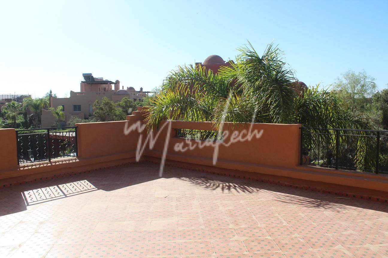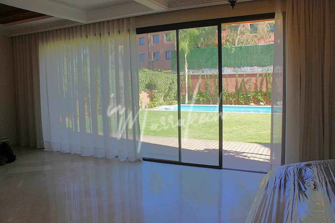 Description : Votre agence immobilière InMarrakech à le plaisir de vous proposer une jolie villa dans le domaine de River Palm comprenant une entrée, une belle pièce de vie avec cheminée avec des grandes baies vitrées en double vitrage, toilette réception, une belle cuisine, deux chambres , une salle d’eau commune aux deux chambres et à l’étage une belle chambres parentale avec salle d’eau et terrasse